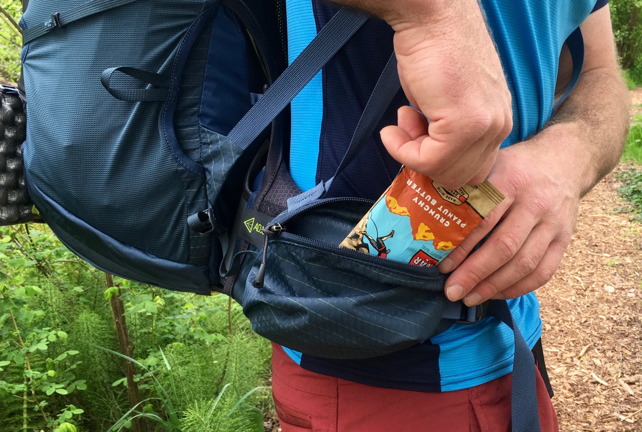 We found this design to be simple but effective and we never had a problem with it slipping out of place. This model's waist belt is adjustable and can be extended to help better fit its wearer. The zippered pocket of the waist belt also moves forward as the belt extends, allowing for easy access.