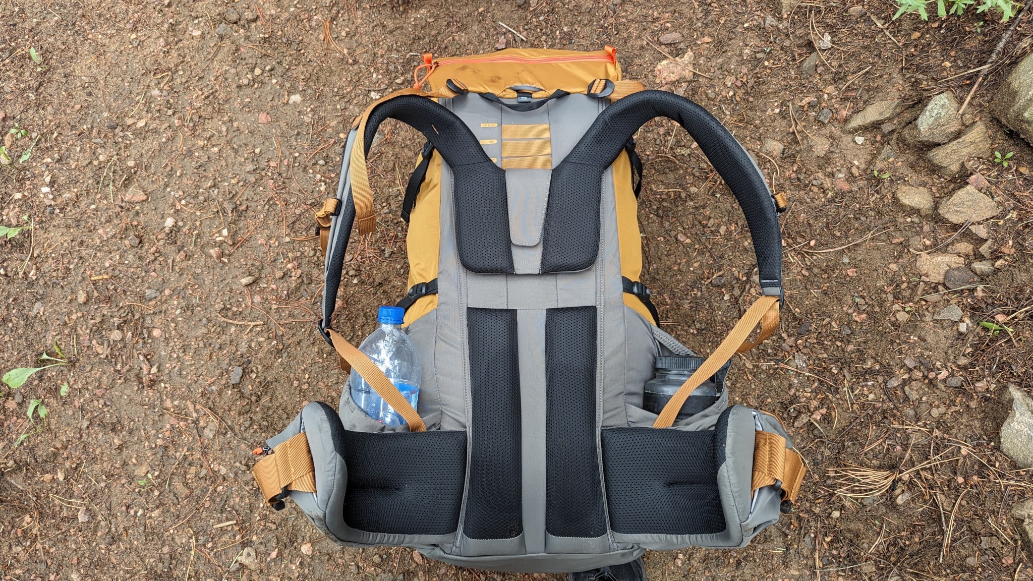 You can reach your water bottles in the side pockets without removing the pack. The pockets are tilted slightly towards you to make it easier to access whatever you store in them. If you're into hydration reservoirs, the pack has an internal hydration sleeve that's compatible with most water bladders.