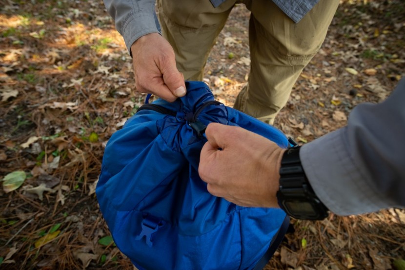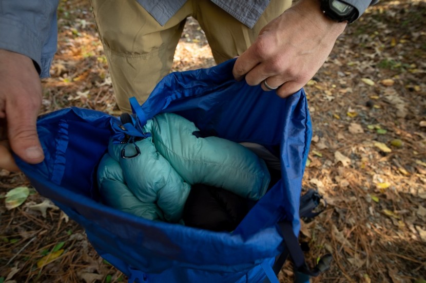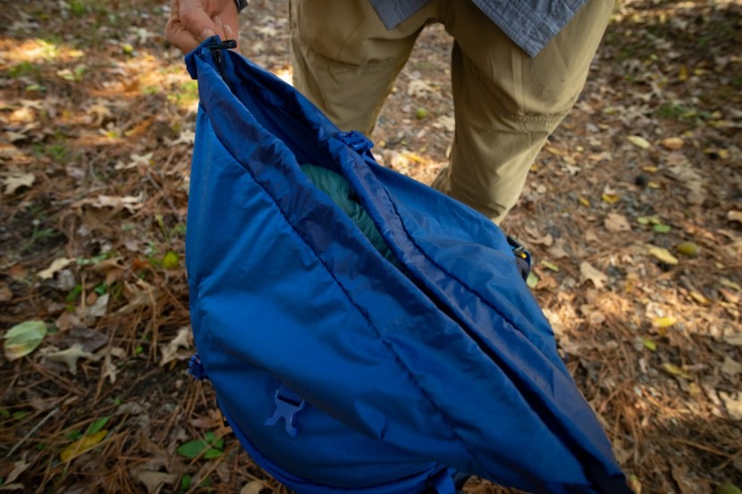 The hip belt pockets are made with a stretchy mesh for storing small items like snacks, but the contoured shape and internal structure made it an uninviting location for a phone or other larger items. This pack also sports a long top town access zipper making it quick and easy to unzip and get something out of the bottom. Zipping a full backpack back up doesn't work so well. The cinching main compartment access is great and has two easy-to-find handles to pull it open.