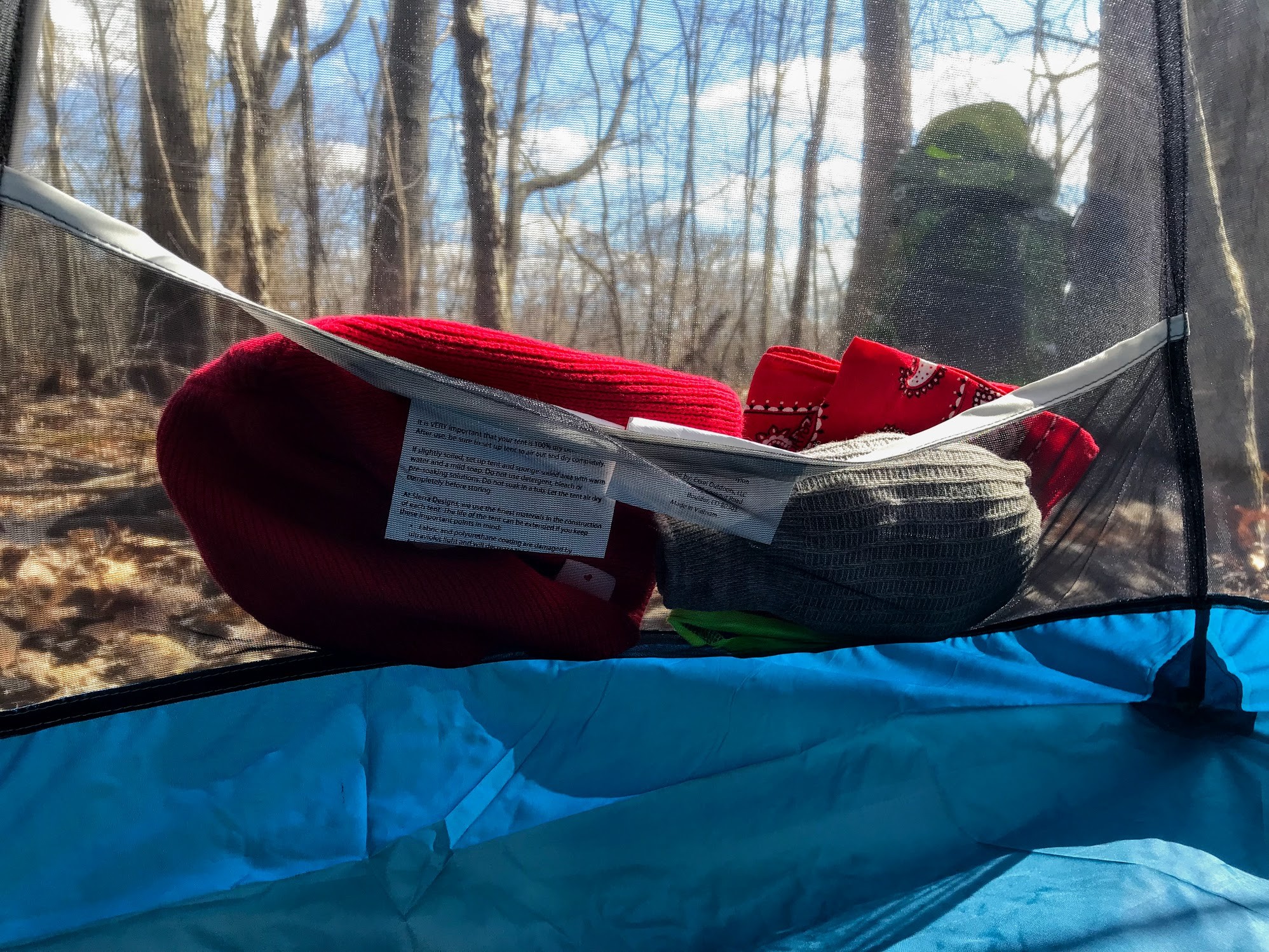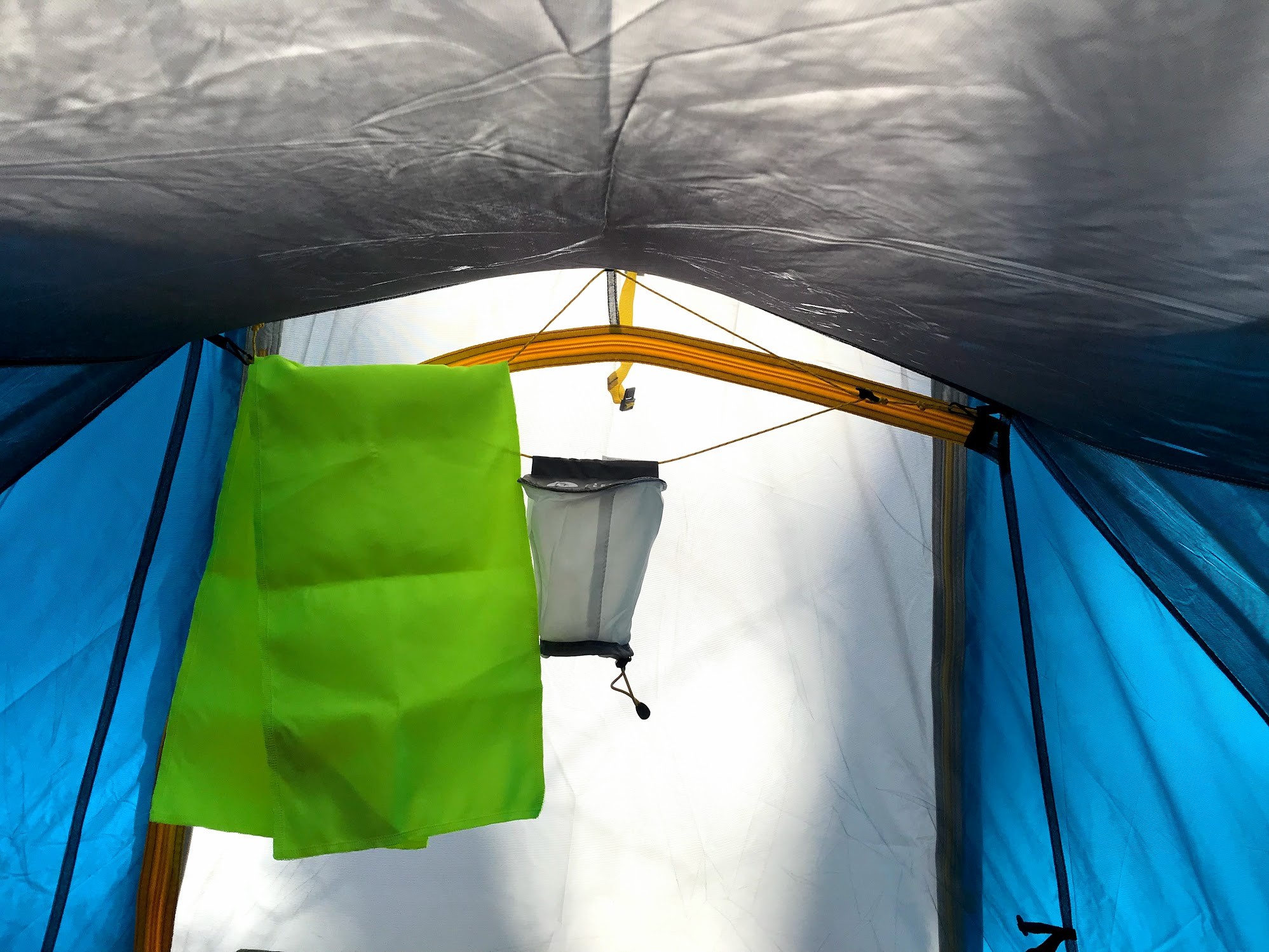 This tent's namesake feature — the flashlight holder at the head — is fine, but it sort of feels like it is included just because. It's nice to the extent that having a holder for your headlamp or flashlight overhead is a good convenience feature, but the design of the pocket itself with the opening on the bottom makes directing the light more of a hassle than it needs to be. One thing that we did appreciate, though, is the extra cord that holds up the flashlight pocket. This can be strung through the loops at the top of the tent to make a clothesline.