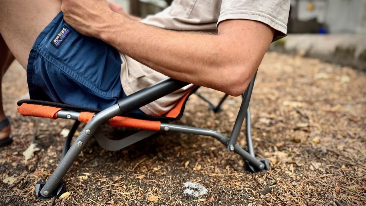 While this chair features a unique design that our testing team found quite comfortable, especially when sitting near a river on a hot day, we recognize that this design may not be for everyone. The seat only rises 5 inches away from the ground, which might make it difficult for some folks to get in and out of. Some testers complained of the bar on the bottom of the frame being slightly uncomfortable, mentioning that some padding would be nice. Still, we love the spacious seat, the breathable material, the padded “armrests” as well as the ability to bend our legs or fully extend out front depending on the day. We highly recommend the Cascade Mountain Tech Low Profile for those who plan to use it near the water, as you can place your legs in the cool water while your upper body is reclined and supported.