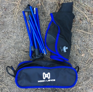 Just like the Chair One, the Moon Lence comes as two “pieces” with relatively easy assembly. The poles are all connected by a bungee cord and snap together quickly. Pockets on each corner of the seat fabric hold the poles in place. One small difference we noticed about the pole pockets, as they compared to the pole pockets of the Chair One, was that they were significantly wider than they needed to be to fit the poles in which sometimes prevented the poles from easily finding the bottom of the pocket required to form a secure base. Additionally, the Lence logo is printed at a 90 degree angle on the side of the chair, which more than once resulted in one of our testers putting it together sideways before realizing what they had done.