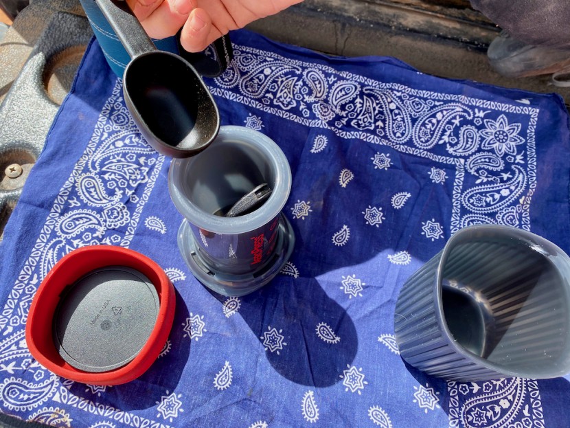 The AeroPress without the added accouterments weighs 7.98 ounces, which isn't exactly featherweight. If you include only a few of the more vital accessories, like the spoon and stirrer, then it weighs 9.39 ounces. If you leave behind the unnecessary stirrer and the spoon, the AeroPress still is not the ideal choice for a gram-counting backpacker but could make the cut as a luxury backpacking item. Better yet, it is an ideal option for a car-camper or van-lifer craving a gourmet cup of coffee.