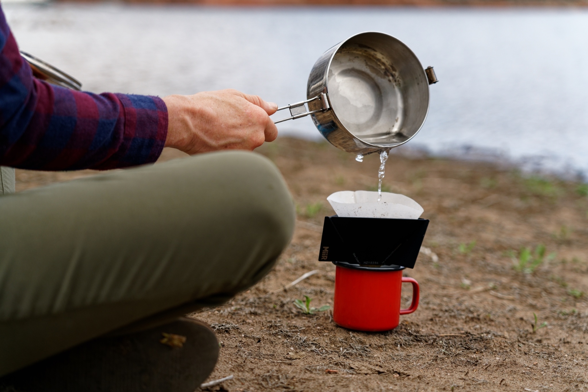 For best results when making a pour-over, you will want to wet the filter prior to use, then add a small amount of hot water to allow the coffee to bloom for 15-20 seconds before adding the rest of your water. You will also need to achieve the appropriate grind. When car camping, we love to use a hand-cranked burr grinder. Set to a relatively fine grind — about the consistency of table salt — we could produce a perfect cup every time.
