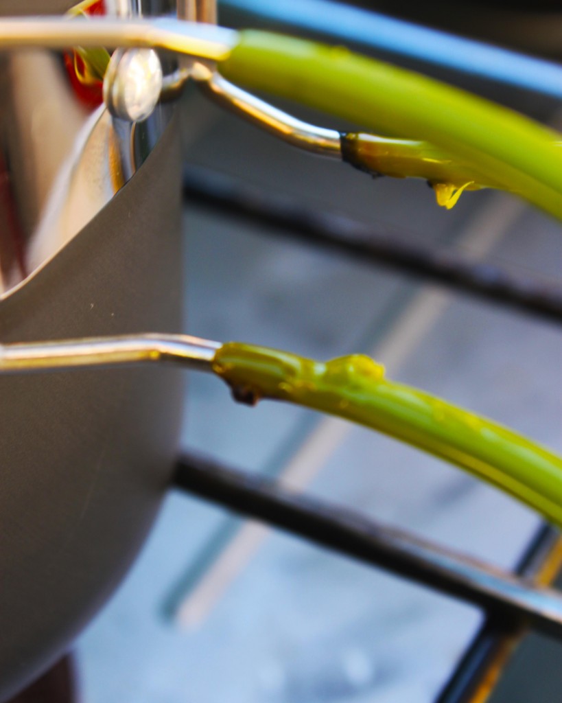 We did experience a durability issue with this set while testing. The handles are coated with bright green silicone to guard your hands against an overheated handle and to make the cooking experience a little more comfortable. However, the silicone near the base melted on stoves with larger burners, such as our two-burner propane stove. We did not experience this issue with a smaller burner system such as any backpacking stove, like the MSR PocketRocket.