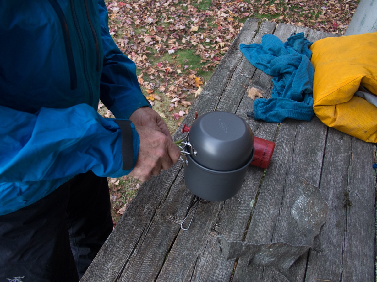 Packability is the scoring metric in which this cookware system shines. The oblong shape makes it easy to pack in with the contents of a backpack, and you can utilize the space inside to pack an entire cooking system: small fuel canister, a backpacking stove such as the MSR MicroRocket, lighter, sporks plus a little coffee or tea.