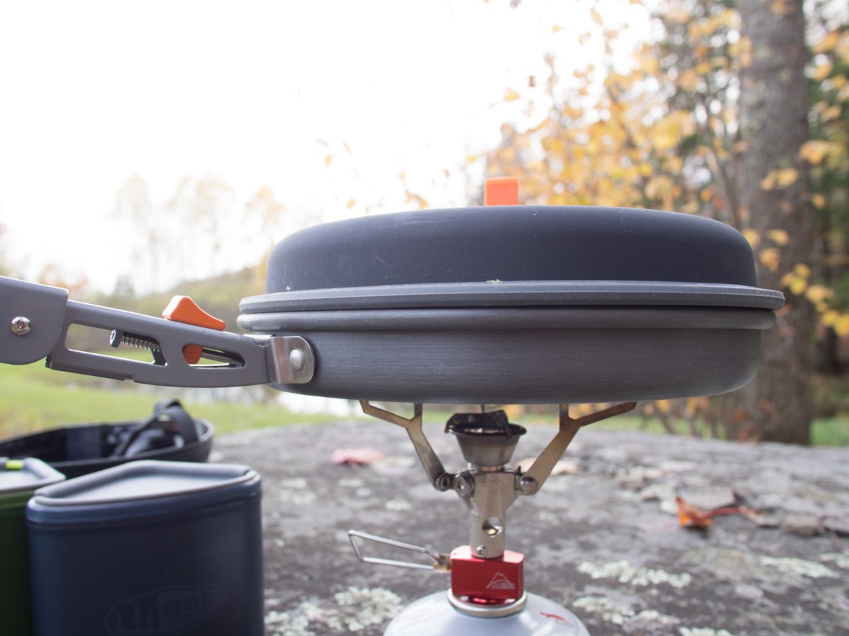 Of the backpacking-ready sets, this cookware, as well as the GSI Outdoors Pinnacle Camper performs the most similar to the cookware we use while at home. This set boiled two cups of water in just under four minutes, which is faster than some but slower than most. The frying pan and lid combination, unique from GSI among the products we tested, allows the cooking of things that are otherwise impossible. For truly gourmet backcountry cooking one needs a frying pan and tight-fitting lid. This alone might tip the balance to the Pinnacle Backpacker. Our test team, for instance, chose it as our only set on a two-week expedition to Chile. In that venue, we were stoked to cook South American steak in the lidded pan, but wish that the eggs we cooked didn't stick so much.