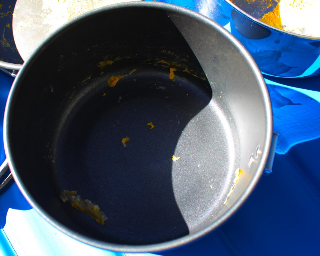 Although you might not be browning scallops or creating fancy sauces in your camping cookware, we created tests to see how well each set performed in some basic cooking challenges. First, we performed a boil test to see how quickly each set boiled two cups of water, and also tested the pot we most commonly use at home for comparison, which is also cast from hard-anodized aluminum. This set performed similarly to the pot our reviewer uses the most often at home.