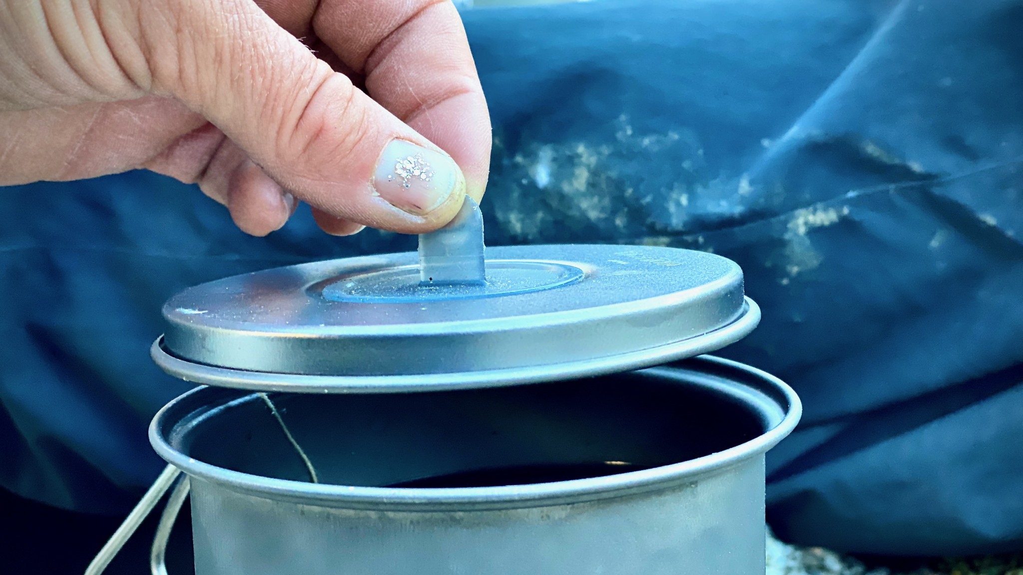 Though the Ti-Mini Solo doesn't offer many features, Snow Peak did get pretty creative with its compact design. The cup has clearly graduated measurements on the inside, which came in handy when dialing in the all-important morning cup of coffee. In addition to measurements, the set also features a silicone tab on top of the lid that allows for safe handling when boiling water.
