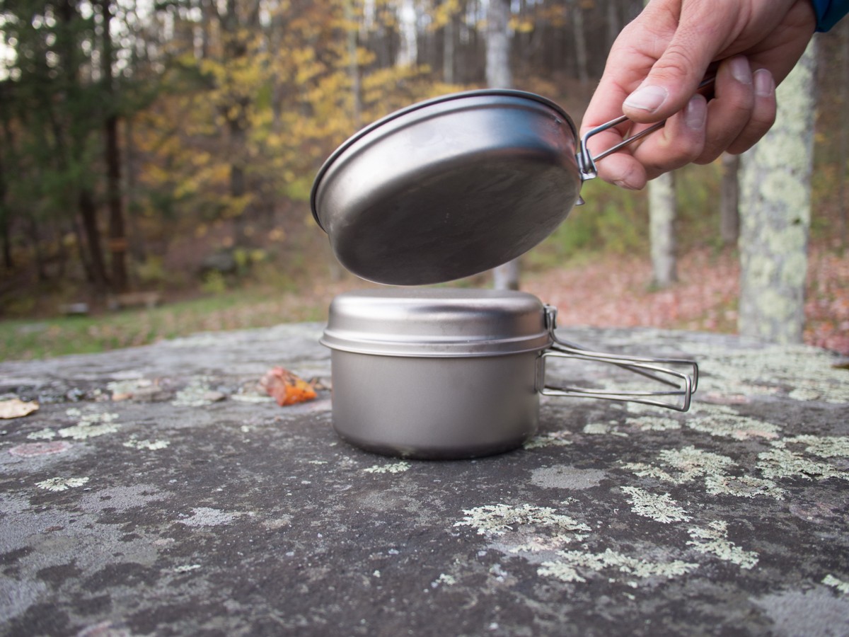 We didn't feel that the pieces in this set were instrumental during backpacking applications. Snow Peak also makes a three-piece set that cuts out the small lid included in this set. However, both of the lids are difficult to use as an optional skillet; based on the results from our scrambled egg test, we're not sure you would want to use them for anything besides lids.