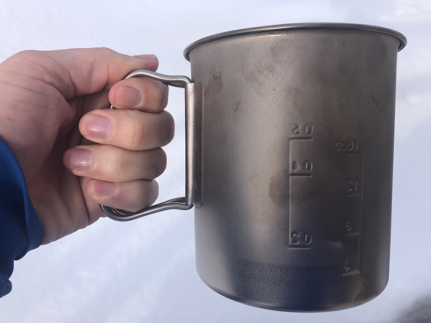 Simplicity. The only real features it has have been etched in measurements on the side of the cup, which is handy for figuring out how much water to use when rehydrating meals. The lid also has a little prong on the top so you can grab it. Unfortunately, the lid doesn't stay on the cup when flipped upside down, so make sure you don't accidentally tip it over when boiling. The entire cup is metal, without any insulation, so you can easily put it in the fire if you accidentally run out of fuel on the trail and still need to boil water. Bonus!