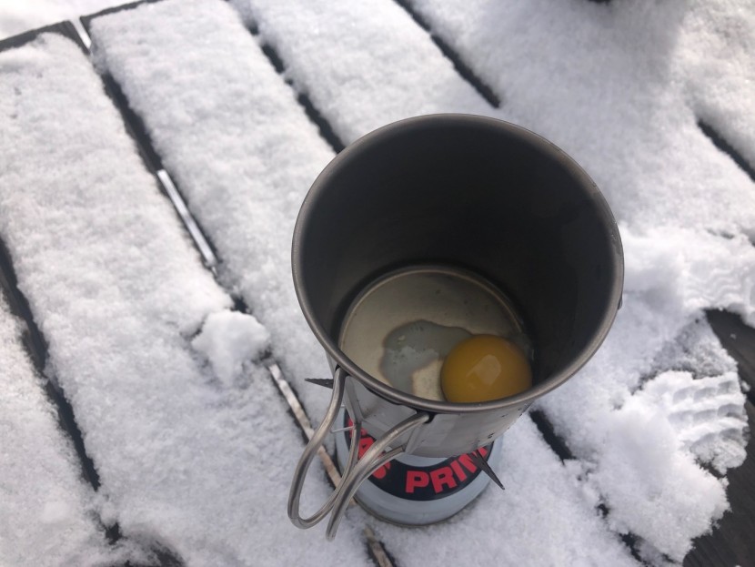 Used primarily just to boil water, this titanium cup can't do much for cooking foods other than those that need to be rehydrated. The titanium is quite thin, so it conducts heat quickly. When performing our egg test, we placed the cup on a single burner pocket rocket.