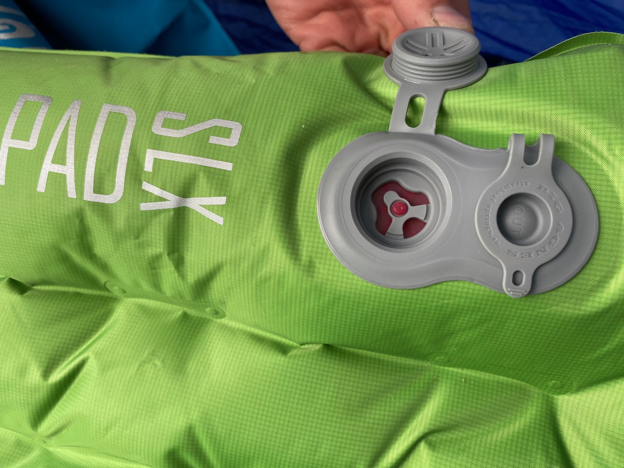 The SLX Camp Floor uses a two-valve system for easy inflation and deflation. Inflate the mattress by attaching the included inflation sack to the inflation valve, fill it with air, and then roll up the sack, pushing air into the chambers. Our testers appreciated that the inflation sack is made of upcycled materials but found it to be relatively heavy-duty, and because of its weight, was not as easy to fill with air as some other, lighter-weight inflation bags. Because of the size of this mattress, that meant that it took more time to get the mat fully inflated.