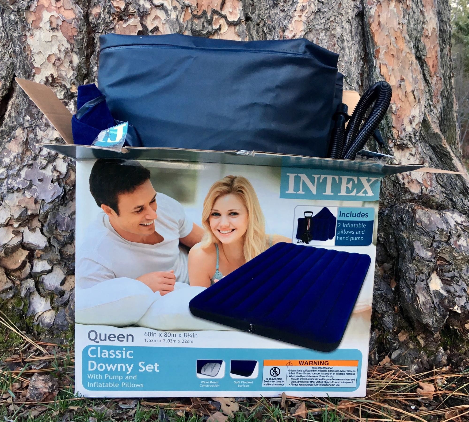 The Intex Classic wasn't the largest packed-up camping mattress we tested, but getting it back in its box required some finagling. If you aren't the sort of person to keep the box, you can fold or roll it into a shape that fits your storage area.