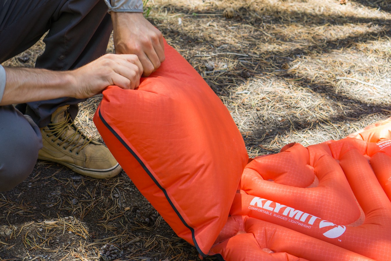 This pad inflates by connecting its stuff sack to the inflation valve, opening the roll-top closure, blowing air in, rolling the bag shut, and pushing air into the pad. It sounds like a pain, but it's not bad at all, and our testers found they could actually move air into the pad without blowing at all, merely opening the top of the stuff sack seemed to fill it with an adequate amount of air.