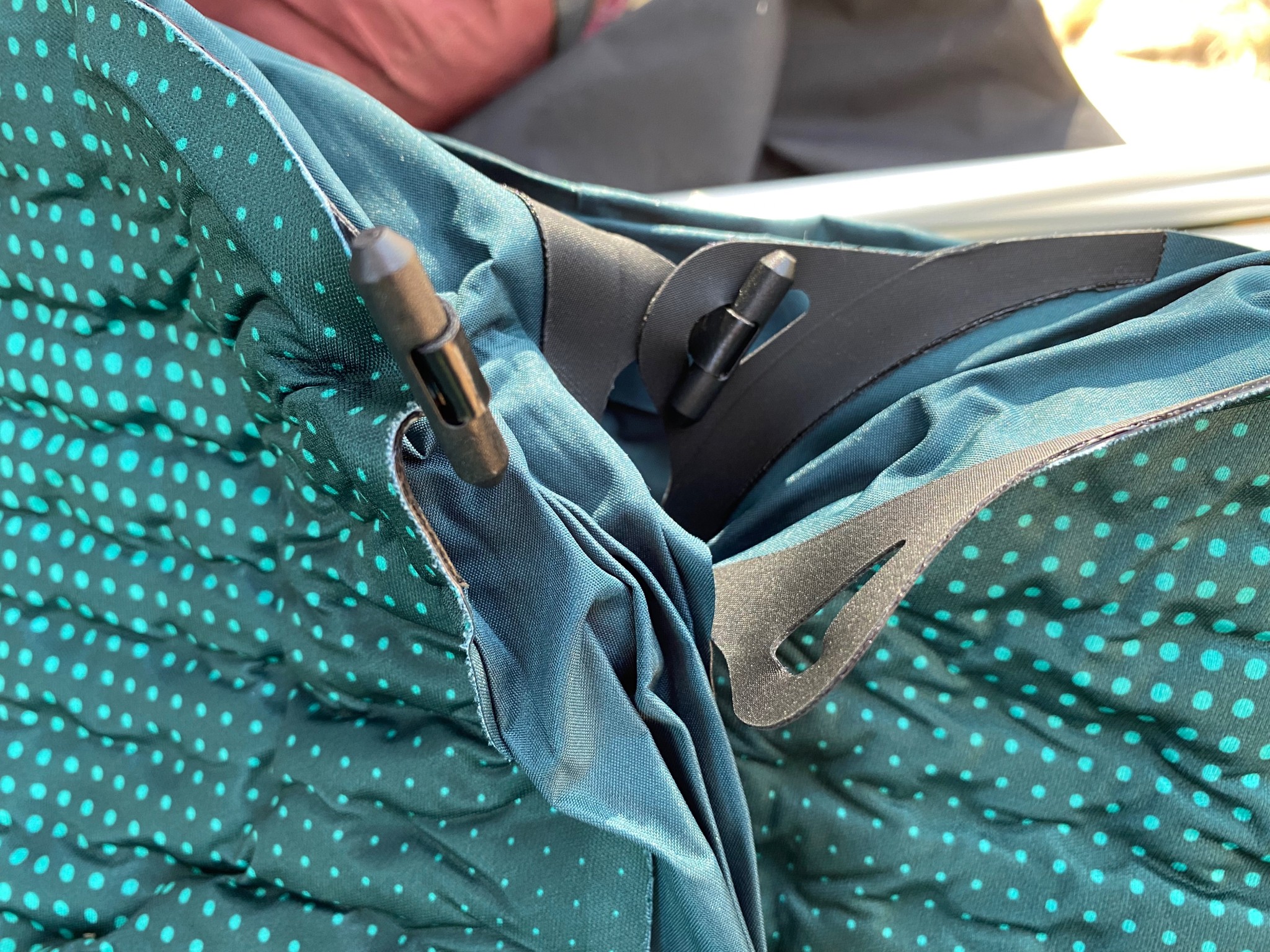 We tested the XL Wide version of the Roamer, and at 30 by 78 inches, it is a very large and plush mattress. Depending on the size of your tent, fitting two of them in a two-person tent might be impossible. However, Nemo makes a Double version that is 52 inches wide, which would make a very plush mattress for two. The toggles on the Roamer serve two purposes: they help hold the shape while rolling it up for storage, but they can also be used to attach two (or more!) Roamers together to make a queen-sized mattress. This small feature actually makes the Roamer more versatile. If you like snuggling with your camping buddy, you know that pad gap is a bummer, but double-width foam mattresses are typically awkward and massive to store.