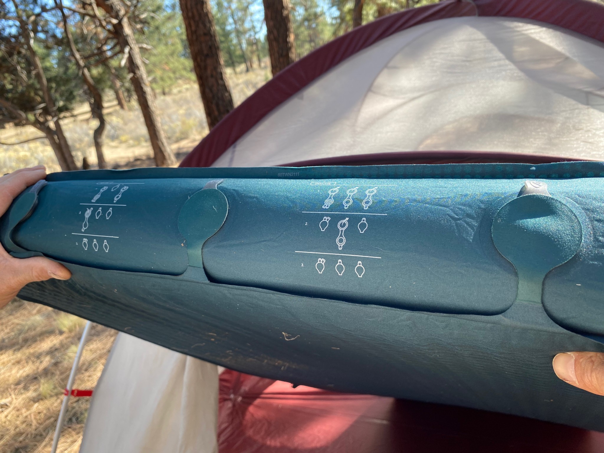 After about five minutes, we closed the two-way valve and popped the one-way valve back in place. The included pump sack made final inflation super fast, taking less than four sackfuls of air to make it extra-firm. We noticed that you have to remove the inflation sack carefully, as it can pull the one-way valve open and release air accidentally. The one-way valve allows for easy micro-adjustment once you are settled into your sleeping bag.