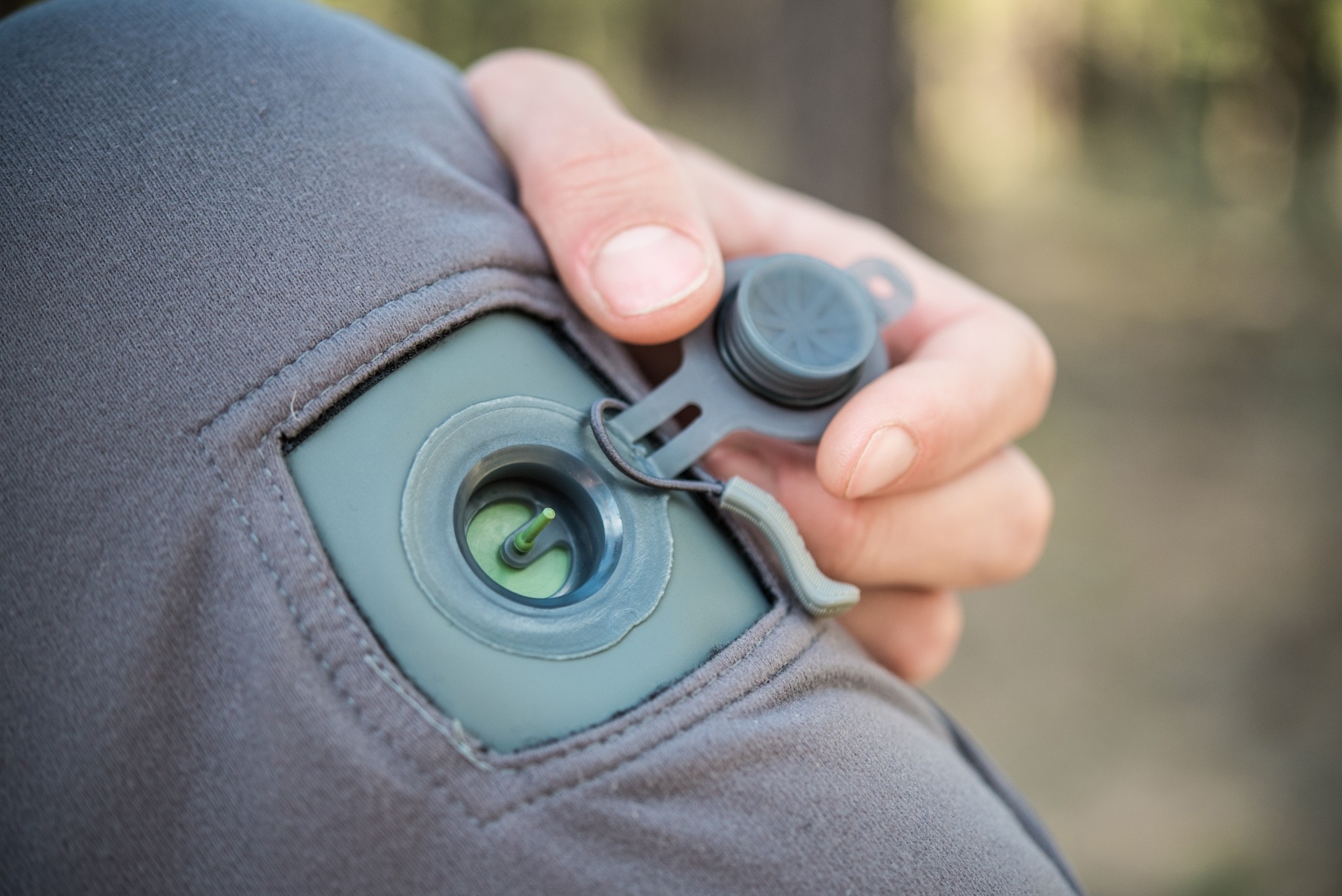 This pillow is simple, and we like that. It takes less than 15 seconds to unroll the REM and inflate it with two to three breaths. The inflation valve is user-friendly. To adjust to the desired thickness, push on the green, rubber toggle inside the valve to let out a stream of air. At full inflation, this pillow is oversized for the average-sized mummy sleeping bag hoods. Packing this model up is also quick and easy. It's easier to tuck a pillow into a sleeve than to wrestle it into a stuff sack, although the tradeoff is a less compressed pillow in its packed state. The Therm-a-Rest Compressible features a similar sleeve to tuck in the rolled-up pillow.
