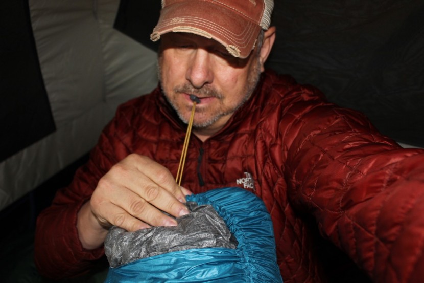 The Down Pillow earns above-average scores for comfort. We enjoyed the unmistakable sensation of down against our noggins. That comfort increased considerably when we combined the Down Pillow with a stuff sack filled with a fleece jacket and a down puffy. We found the thin, silky polyester shell very comfortable. However, its thin nature allowed the down to compress quickly during the night, leaving a less-than-desirable amount of padding under our heads.