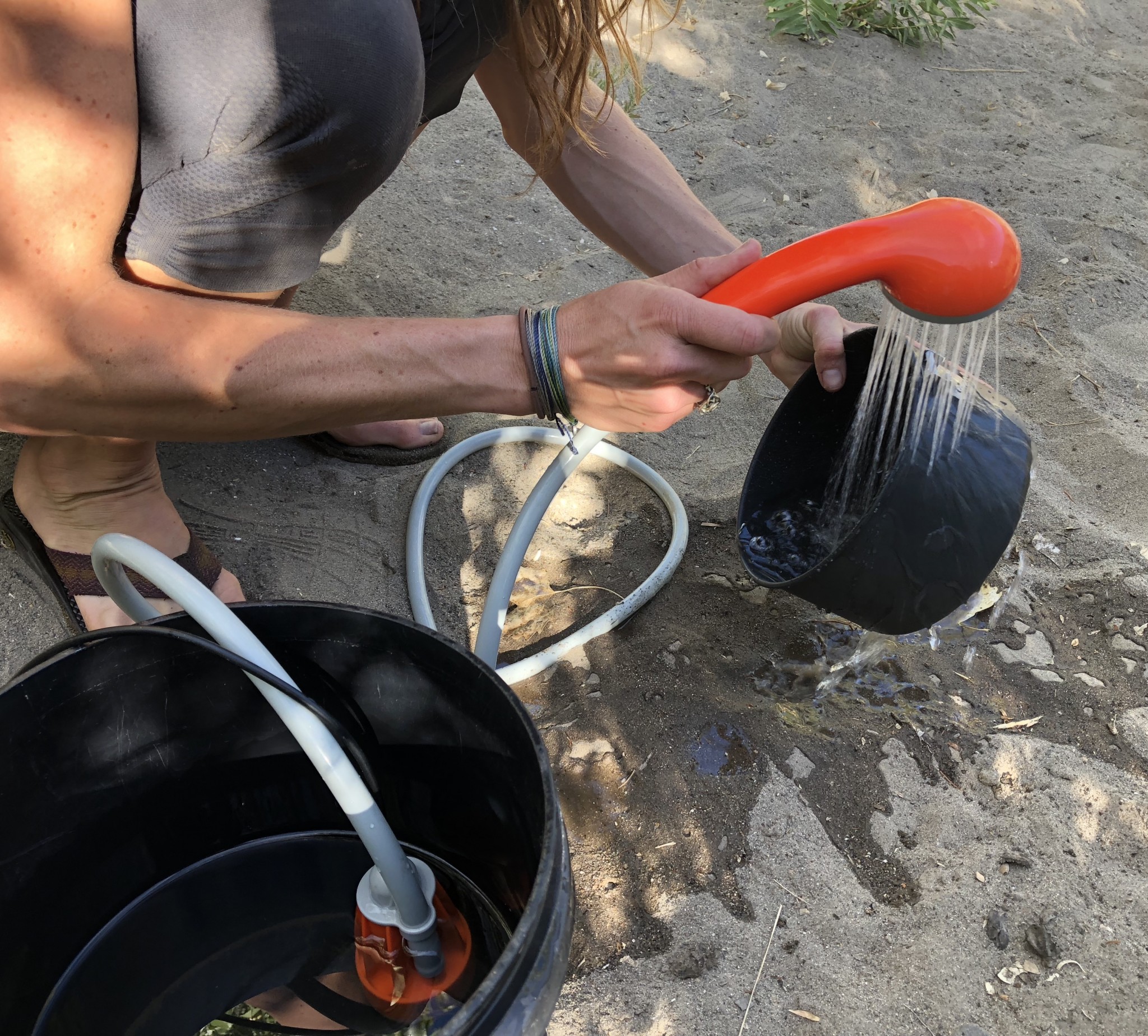 One downfall of this type of shower is the heating of the water used for your shower. A 5-gallon bucket of water left in the sun will heat up, depending on the color of the bucket, but it also collects debris and bugs and other creatures from the outdoors - and who wants to shower in dead moth water? Not us! But heating water to fill a bucket that large is quite a chore, and with an open top, you'll lose heat quickly too. But if you can find that sweet spot, the AngLink is a great performing shower.