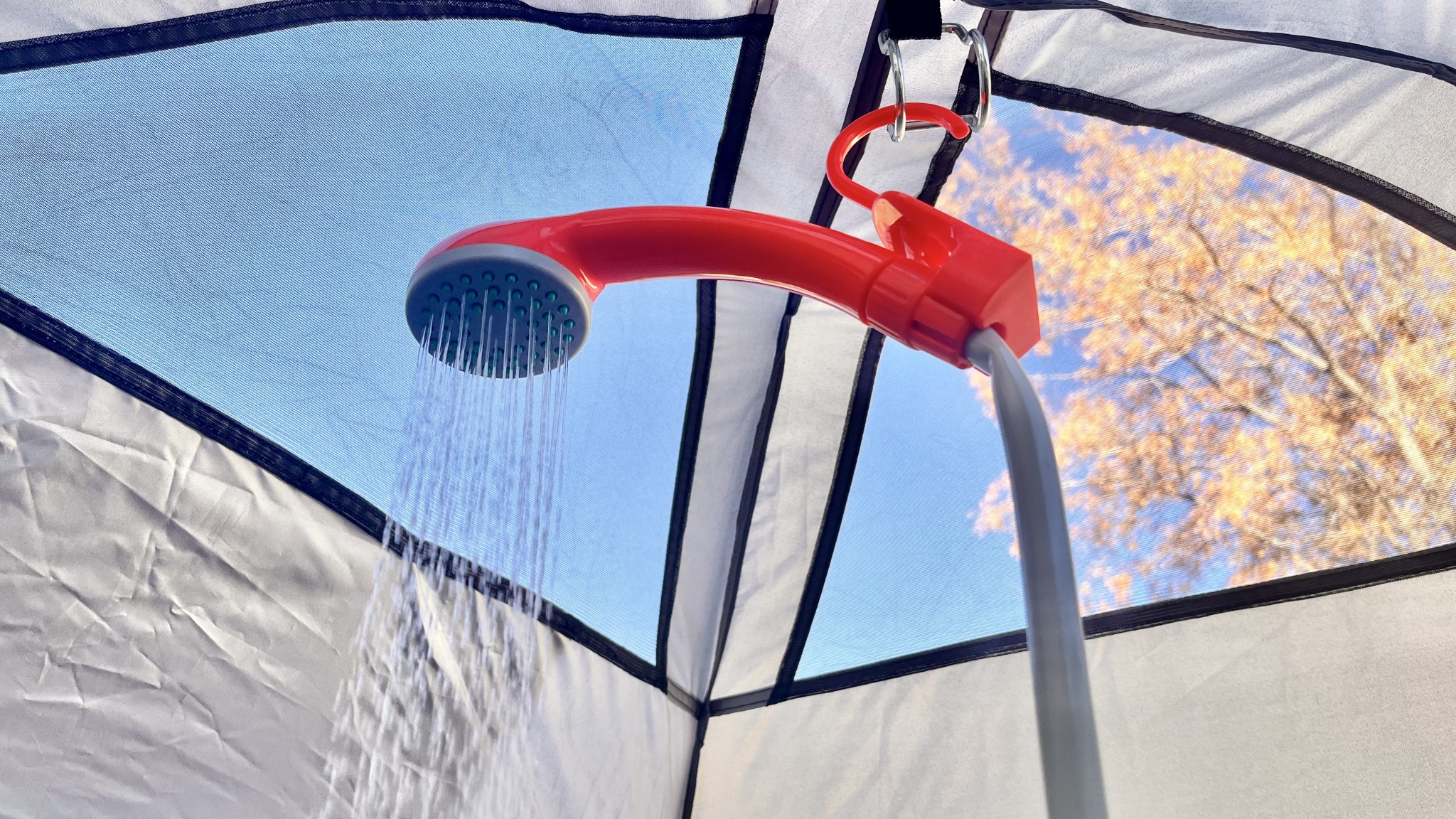 A lot of showers don't have a hands-free option and require you to purchase an extra pole or an entire tent to rig up your nozzle. We appreciate the simple dual setup that includes a hook or you could opt for the use of suction cups to put on the side of a van or trailer.