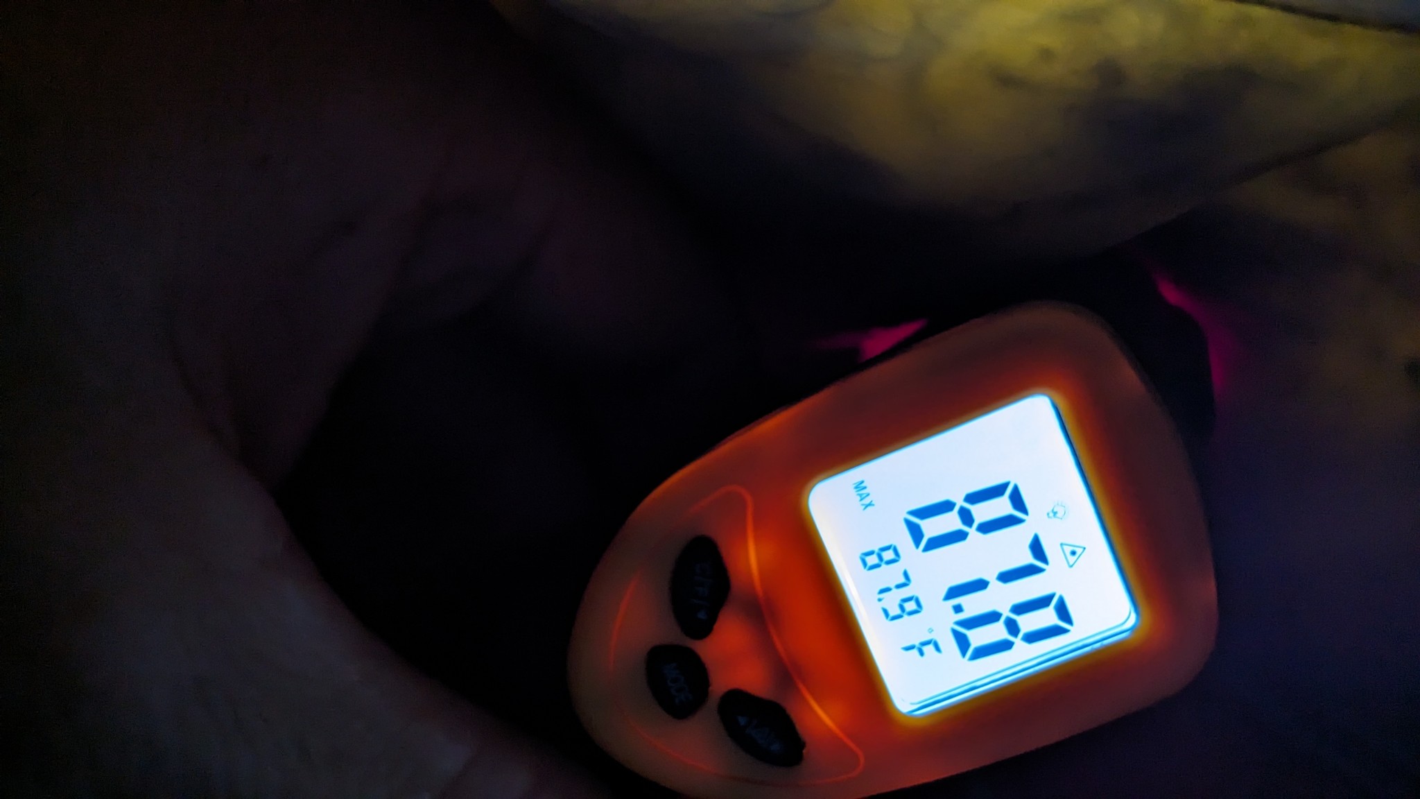 The down walls of the Galactic are thin, making it the lightest bag in our lineup. However, this, and its 30-degree rating, also means it doesn't hold as much body heat as larger, thicker bags. During our controlled tests, we measured the bag's interior temperature after lying in it for 5 minutes. As predicted, its 87.8-degree measurement was the lowest on our list, meaning the Galactic doesn't hold in as much body heat as the rest of the bags we tested. That said, this bag is still warm enough to be one of our first grab-and-go options for nearly any summertime getaway.