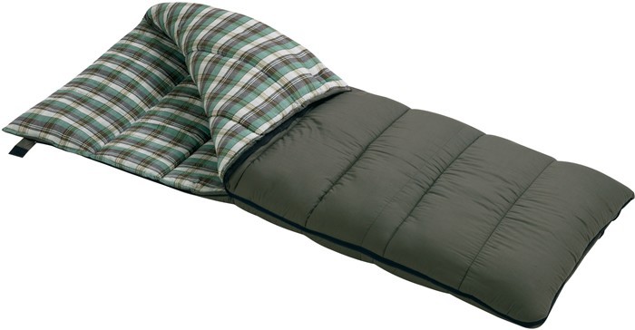 The budget-conscious car camper can't beat the Wenzel Conquest sleeping bag for warm weather use. This spacious and comfortable bag provides three-season warmth at rock bottom prices. Whether you're road tripping around the country, or car camping for weekend getaways, the flannel lined Conquest is a good choice. It opens up to make a nice picnic blanket, and it is our favorite warm weather car camping bag.