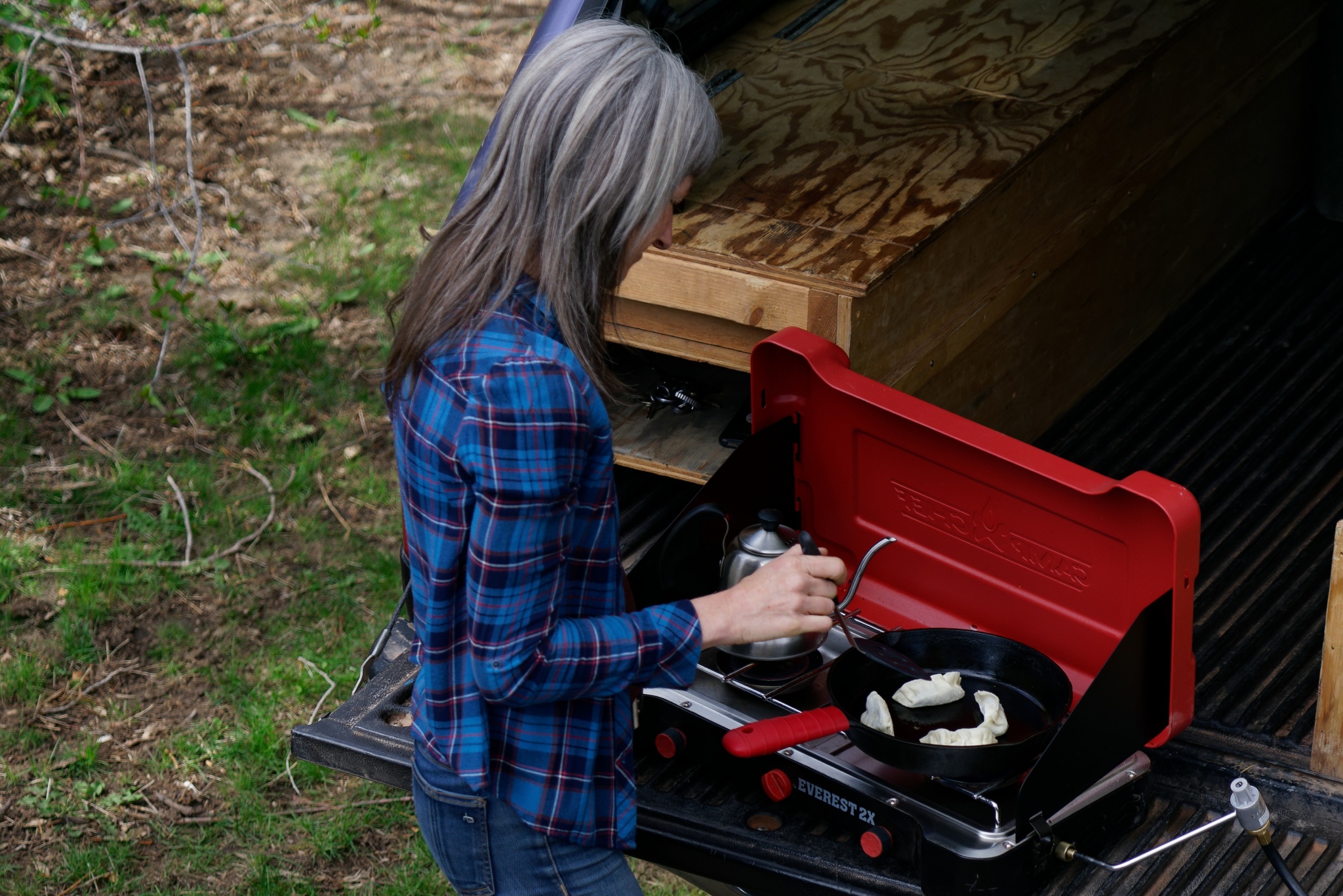 While we maintain that the Everest 2X is an incredibly portable car camping stove, it is bulkier and heavier than others in our review. That being said, the recessed carrying handle on the back-side of the stove is among the most comfortable, and our reviewers were unbothered by its heft. When deciding whether this stove is right for you, it might behoove you to consider how much space you have in your camping kit for stove storage. If space is a concern, you may want to check out other models in our review, as this stove commands more space than most other models in our test suite. However, if you are looking for a high-performing stove and your rig can accommodate a bulky stove, then this might be the one for you.