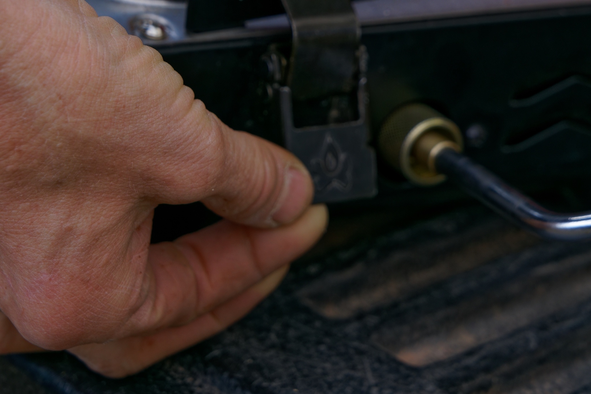 Set up for the Everest 2x is pretty easy, simply rock the lid open, swing the windscreen wings out and latch them in place, then install the regulator and propane tank. And voila. Credit: Jared Ross