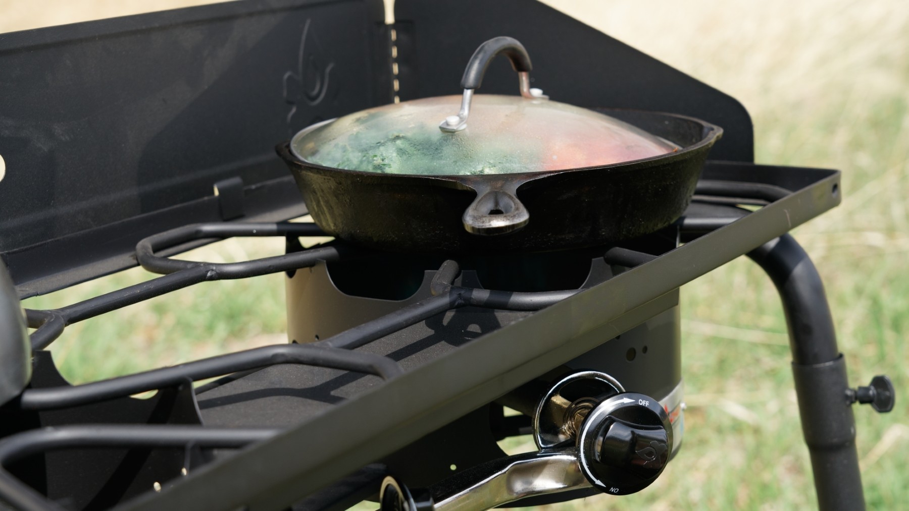 Even though the burner knobs are tight, and you can dial down the flame quite a bit, they produce too much power to simmer well. We were able to make a decent (albeit al dente) pot of rice with the Outdoorsman, and this stove could handle stir-fries, stews, and curry with ease. But if your camping meal plans consistently call for delicate sauces, we recommend checking out one of the simmering champions in our review.
