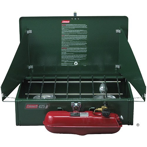 The Coleman Classic 2-Burner Liquid Fuel Stove is really similar to the Dual Fuel 2-Burner Stove. We did a full review of the Dual Fuel 2-Burner. The only real differences are that the Classic only burns white gas while the Duel Fuel burns both white gas and unleaded gas, plus the fact that the Classic is $35 less expensive. That and the fact that the Classic's fuel tank is red and the Duel-Fuel's fuel tank is gray.
