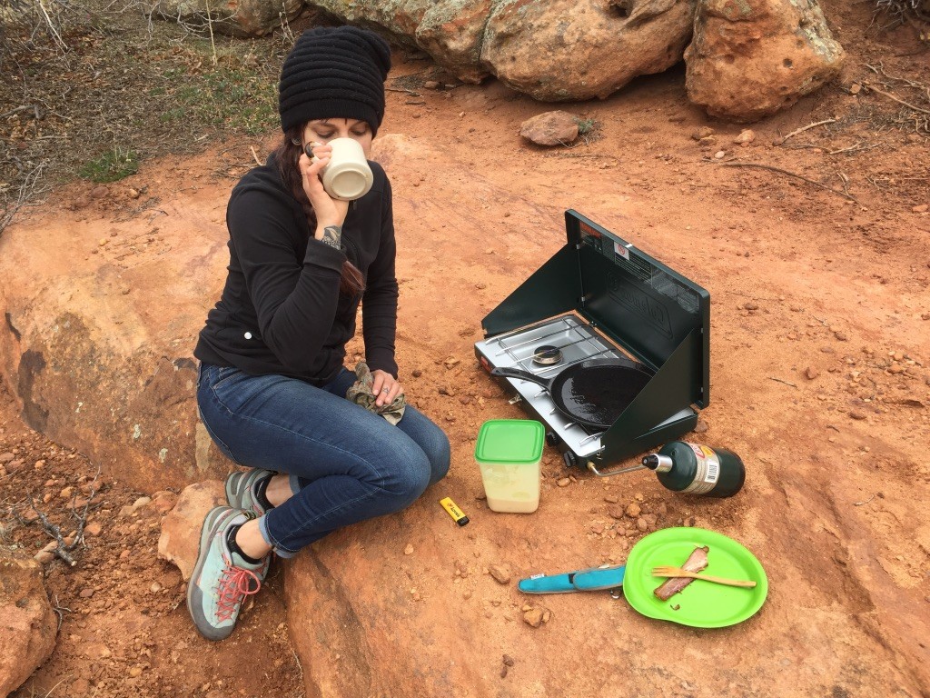To measure boil times, we head to our windless “lab,” aka our garage, at 5,000 feet (1524 meters) and do two boil tests. For the first test, we boil 1 liter of 58°F water in the presence of 2-4 mph of “wind” (as measured by a pocket anemometer) generated by a box fan. For the second test, we boil 1 liter of water in the absence of wind. For the windy test, the Classic boiled water in 6 minutes 15 seconds, and in the wind-less test, it boiled water in 4 minutes 45 seconds. Part of why it did well in the windy boil test is due to the innovative design of the windscreen. The windscreen on this stove can provide near total protection from a side wind, which effectively protected the burner from our fan-generated breeze. In the field, this allowed it to remain relatively consistent through all manner of weather variations. Despite just 10,000 BTUs per burner, the compact design packs a little punch. If speed is a priority for your boiling needs, however, one option is to pair the Classic with a rapid-boiling backpacking model like the JetBoil MiniMo. Not only will this mean you get your morning coffee faster, but it frees up a burner to make extra pancakes.