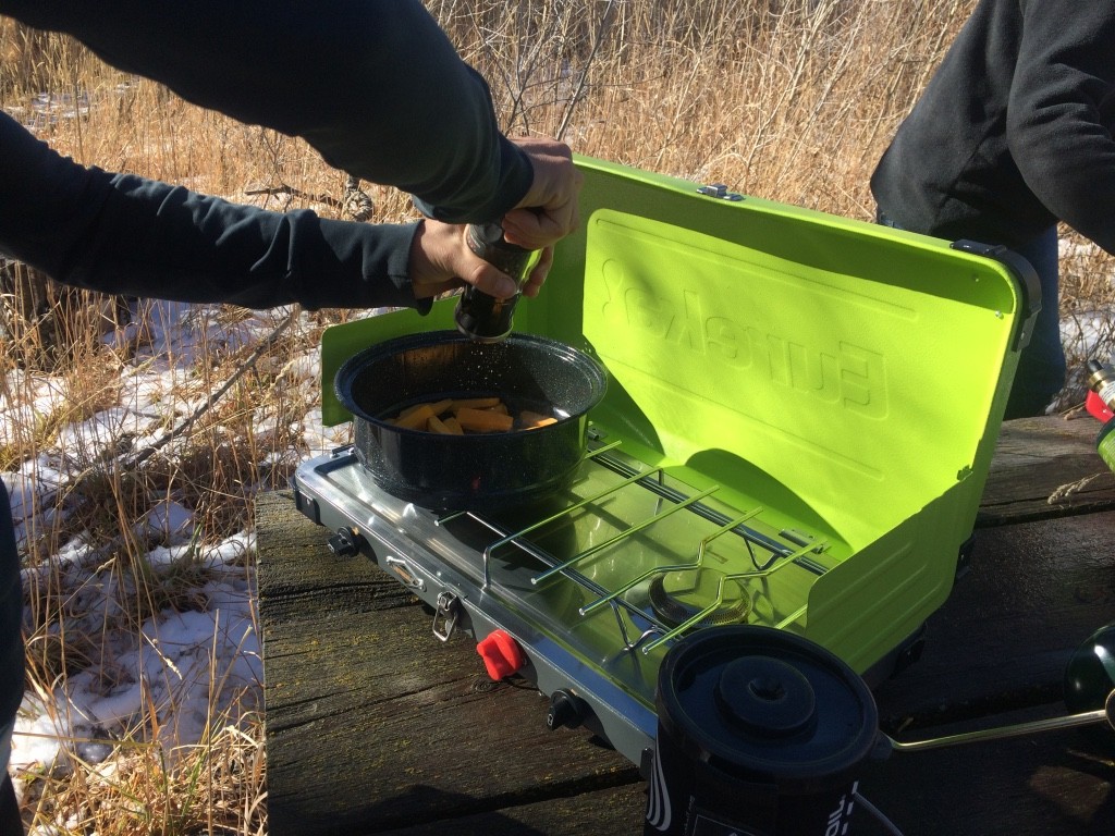The Eureka Spire LX didn't dominate any single test metric. It did, however, keep up with the big dogs by having strong, consistent scores across the board. Our testers liked the reliability this model provided, despite having relatively low burner power and size. We also enjoyed the adaptable design: the Spire has a Jetlink port that accommodates a special adaptor, allowing you to connect a JetBoil or other Eureka stove and run it all off the same fuel source. Granted, if you're already car camping it really isn't necessary to skimp on one extra fuel container — especially when doing so requires an additional equipment purchase — but we still think it's a neat idea.