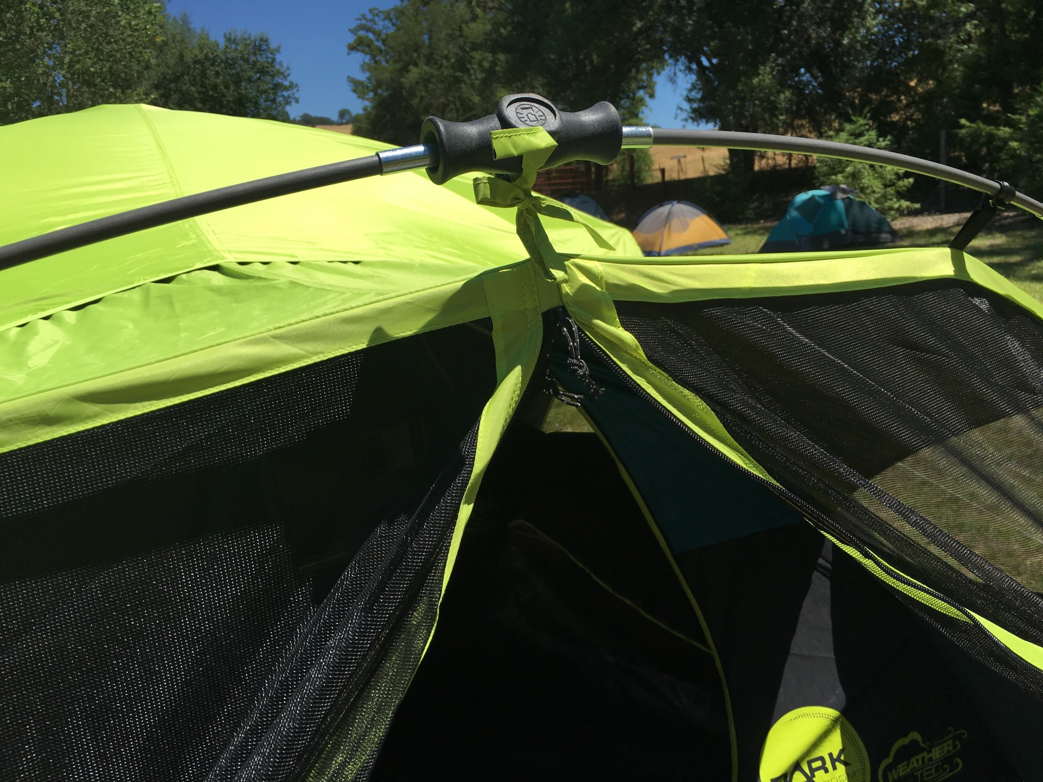 Coleman pitches its Carlsbad Fast Pitch tent as your answer to the greenhouse effect of tents in the sun: this tent, they say, will stay cooler than other tents in the sun. And our testers found this to be impeccably true. One tester was even startled, late one July morning in the sunny Napa Valley, to realize she was the last one to wake up in the morning among a group of friends camping out for a wedding.