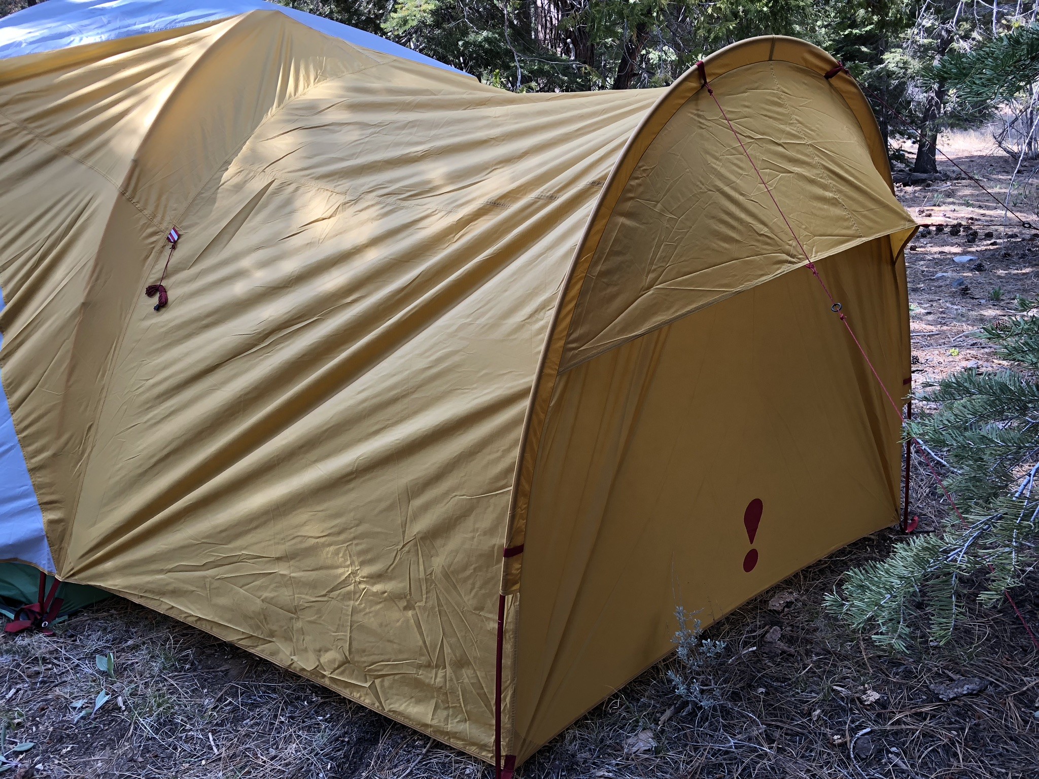 Furthermore, the outside wall of the gear garage has an independent pole that requires guy lines and staking to stay upright. Again, it's not difficult, just time-consuming.