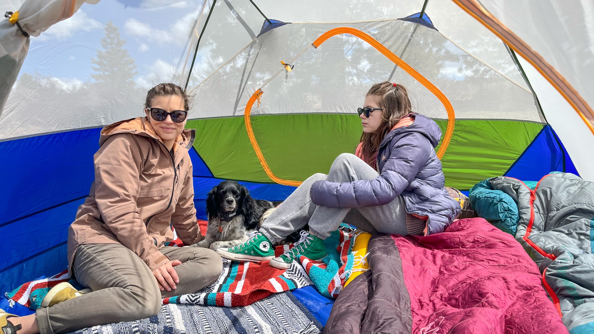 This is a smaller, lower, 4-person tent. Packing two adults, some kids, and some dogs will be snug. Should the weather cause everyone to be in the tent for an extended period, this will not add to the joy. Realistically, you can fit three singles or a twin air mattress in here with enough room for some storage — any more is going to be a bit much for this tent. The large size of the vestibule does help, especially if your dogs (or kids) are good at sleeping on the dirt. We were able to fit a small chair and table, but things were snug.
