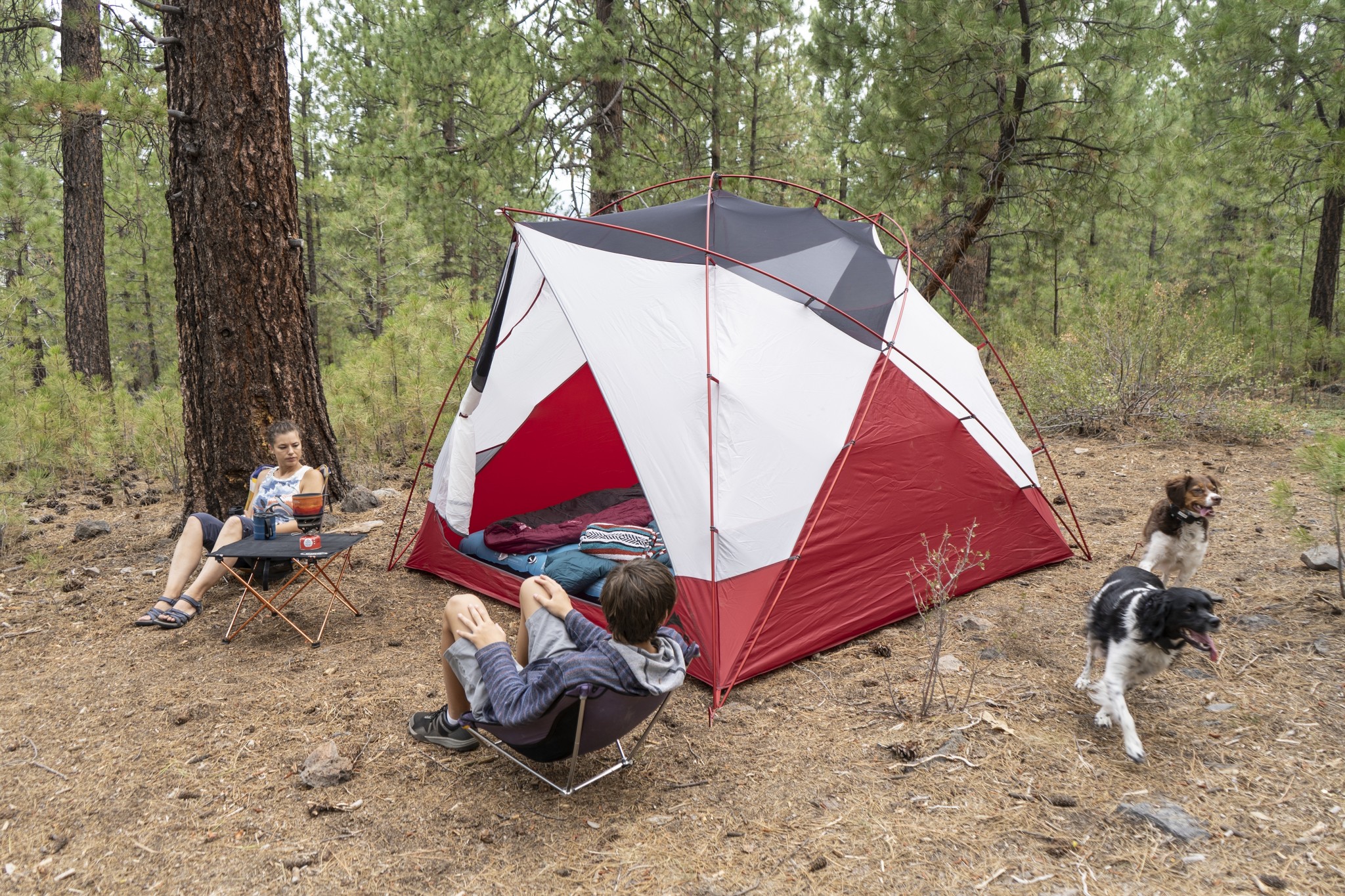 While the Habitude 4 is not in our top rankings for family-friendly, the tent can still house two adults, two kids, and a furry friend.