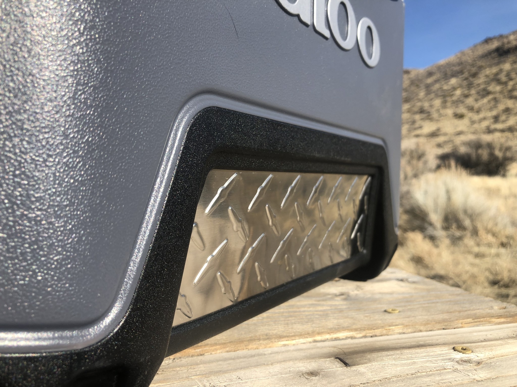 The BMX 25 looks tough from across the room. In fact, BMX stands for blow-molded eXtreme, referring to the manufacturing process used in its creation. It's adorned with a stainless steel kick plate, as Igloo refers to it, and many other components made of stainless steel, including the hinge hardware and reinforcement inside of the swinging handle. In our durability testing of the Igloo, we spent a significant amount of time standing and jumping on it, and we wouldn't recommend that you do the same, as our tester noted that "it is long and narrow (for its size) and thus was very wobbly!"