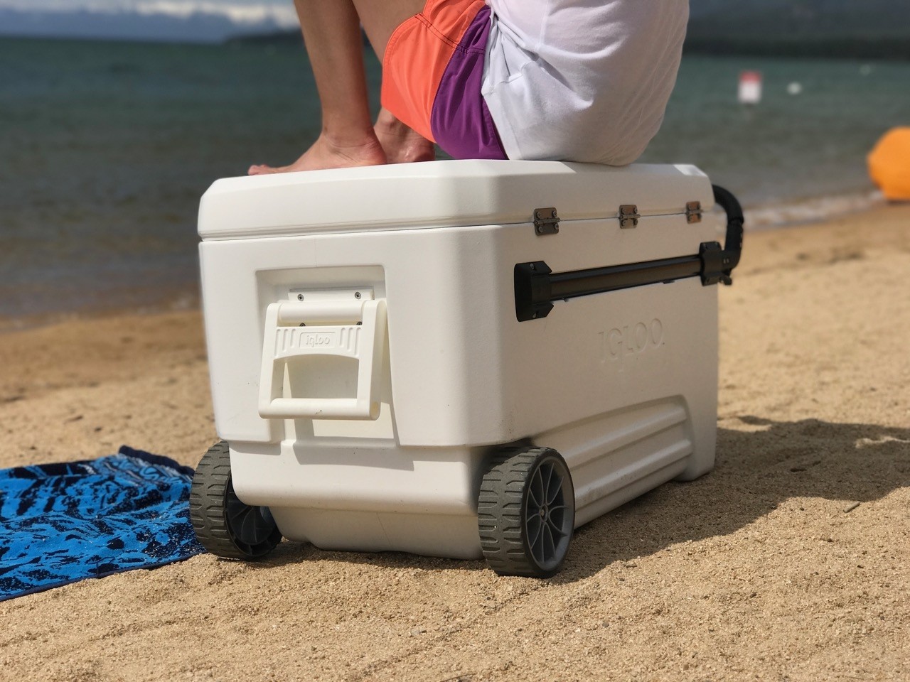 The Igloo Glide PRO is our favorite wheeling cooler, as the telescoping handle makes it much easier to roll around. If you want something with wheels for your next big bash, this is the cooler for you.