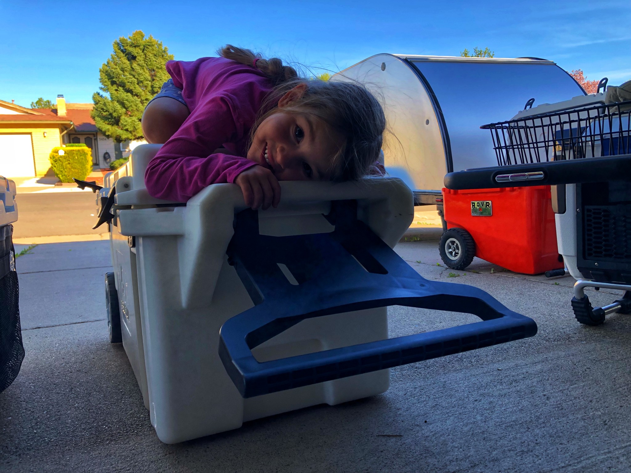 The Pelican was voted “easiest to open” by our four-year-old tester, who spent a good chunk of time pressing them open and closed over and over again. We aren't in love with the usability of the trolley handle, which is thick, cumbersome, and needs to be pulled up and pushed down into position. We also think the asymmetrical handles (round in the front and square in the back) are a bit awkward. In general, the large size of this cooler makes it difficult for a single person to lift in and out of a car alone - and if it's full of food, you can forget about it.