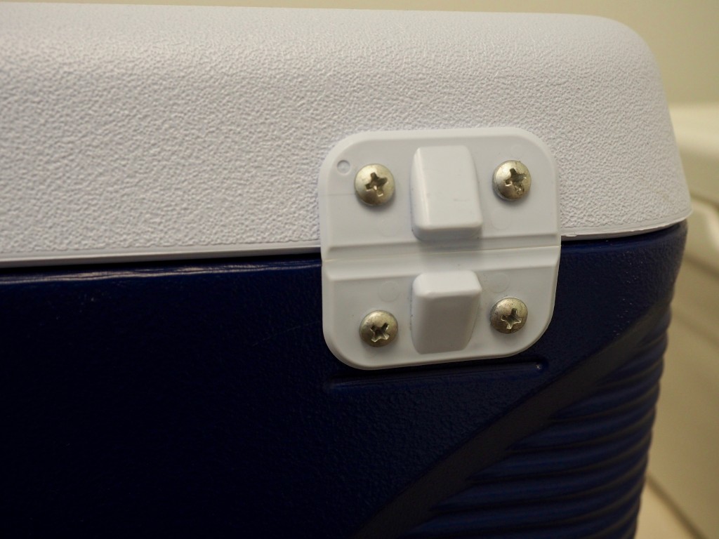 The internal latch design on the DuraChill's lid is the least favorite amongst our testers and can be finicky to get open, especially when the cooler is empty. Once open the lid easily stays open. The dual opening lid design lets you check on contents without opening the entire lid, but probably contributes to the lid's flimsiness. The drain on the DuraChill is fairly easy to open and produces a splash-free stream of water. However, the addition of wheels forces the DuraChill's drain to be very high up the body, meaning you must essentially tilt the cooler 90 degrees to get all the water to drain. This can be quite a pain, especially in our crowded testing room, or when trying to drain from within a car trunk. The DuraChill avoided the bottom spot in our ease of use scoring, but still received a below average score of 6. The top score in this metric was an 8 and the bottom was a 5.
