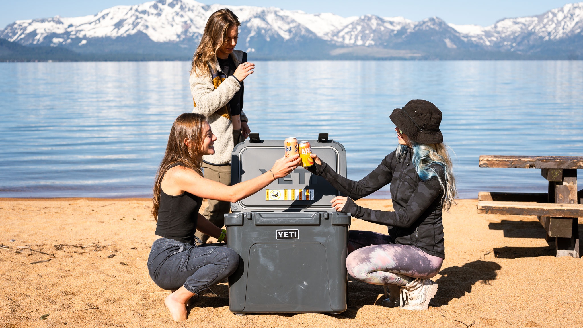 The Roadie 60 is equipped with burly wheels that can tackle just about anything. Much like a suitcase, a telescoping handle extends to pull the cooler around. It rests on four rubber, non-slip feet that help keep it from rolling away. We jumped on and off the Yeti to see how well it held up. We are pleased to report that it is very sturdy and can handle a bit of wear and tear. Plus, its wide top doubles as a table or chair. Though we didn't test this, the Roadie is dry-ice compatible thanks to its gasket that allows gas to escape.