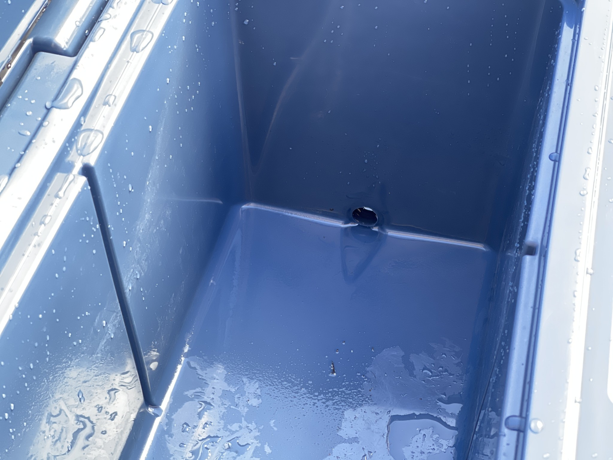 When accessing cooler contents, the lid of the Tundra 45 somehow manages to stay open without actually spanning a full 90 degree angle. The Tundra line of coolers prioritizes a longer, lower shape that makes it easier to locate small contents even when the chest is filled with slushy ice water. It also has a small channel that effectively drains meltwater from its dual-sized drainage port. Though we find the roughly 35-quart capacity to be both useful and convenient, we do think the name of this cooler is a touch misleading. Yeti lists the dimensions of this model's interior prominently in its description, which can easily be calculated (we also measured it) to learn that the Tundra 45 actually has a volume of a bit over 34 quarts. This is a theme across many of the Yeti coolers we've tested over the years. Again, we continue to appreciate the actual volume and convenient sizes of the models we've tested, we're just not stoked on the lack of consistency between models' names and volumes.
