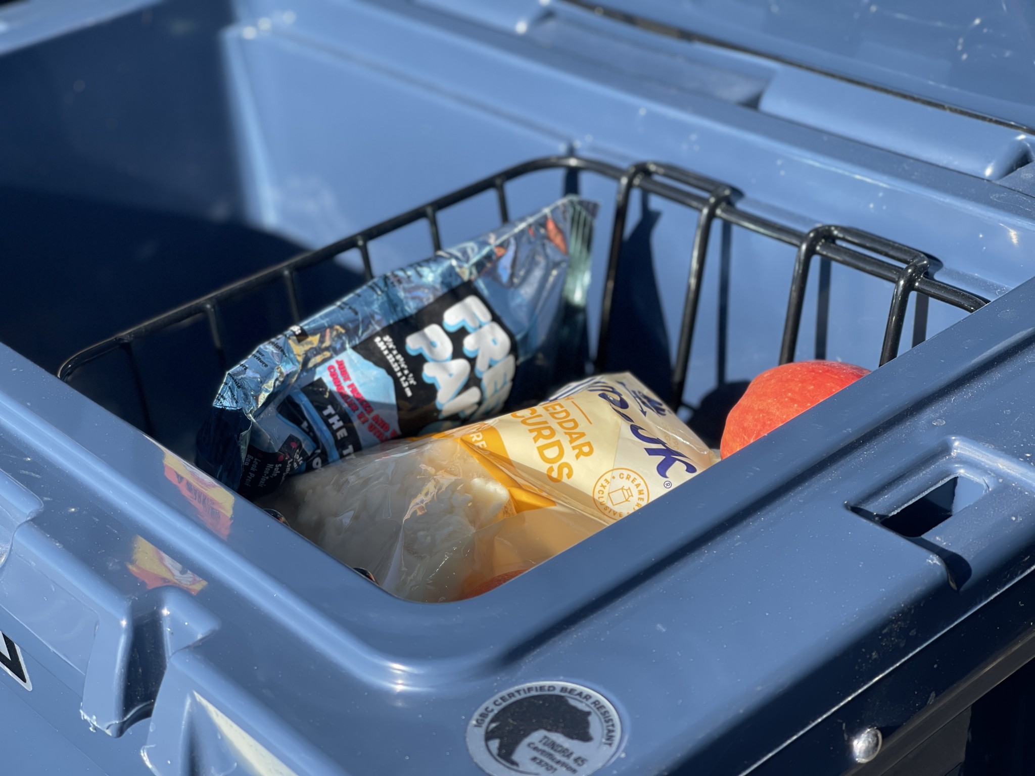 Perhaps most notably, the Tundra 45 comes with a perfectly sized dry goods bin that hangs inside the cooler — though its widely spaced wires aren't ideal for holding smaller items. To accompany tie-down slots on either side of the lid, Yeti has added shallow channels that help hold a webbing strap in place as it travels up and over the edges of the lid. This model has been certified “bear resistant” by the IGBC, with locking front corners to actually keep critters out when used with Yeti's cooler locks — which we have tested. They fit perfectly and seem to work well (though no actual bears attempted to break in during our testing), though they can be challenging to fit the key into, as the keyhole faces directly toward the ground and can't be rotated upward for easy viewing.