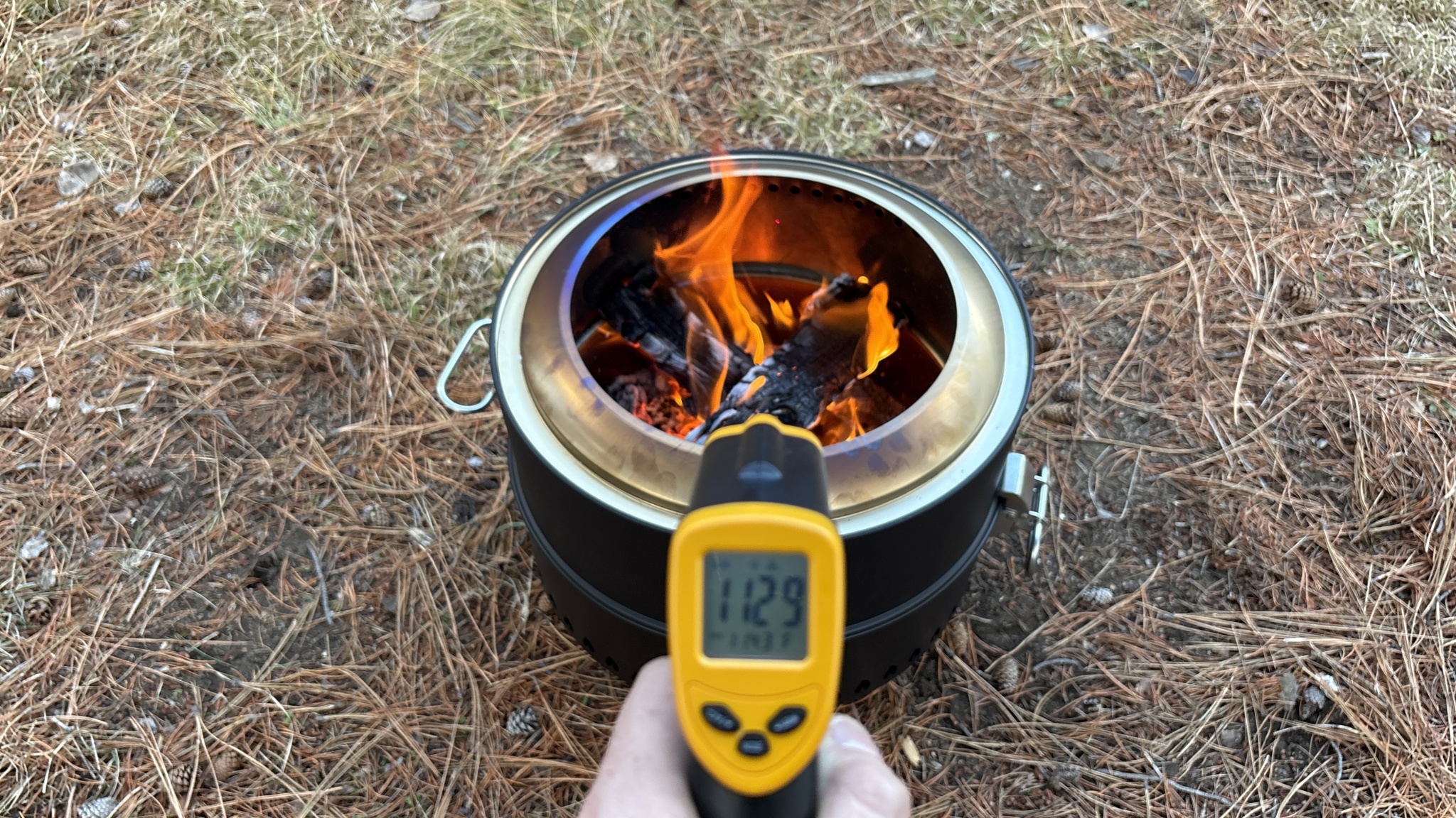 Our testers used infrared thermometers to measure the inside walls during peak burn, and also measured radiant heat from various distances at two, four, and six feet away. The Ciays was a little underwhelming in this category. While it produced a very hot fire, with infrared readings up to 1200 degrees Fahrenheit, it emitted very little radiant heat outward. Even at four feet away, we didn't feel enough meaningful heat from the Ciays for us to enjoy sitting around the pit. For travel and camping, especially during the summertime, this may be less of a concern, though we wish there were an option to purchase a heat deflector shield for it.