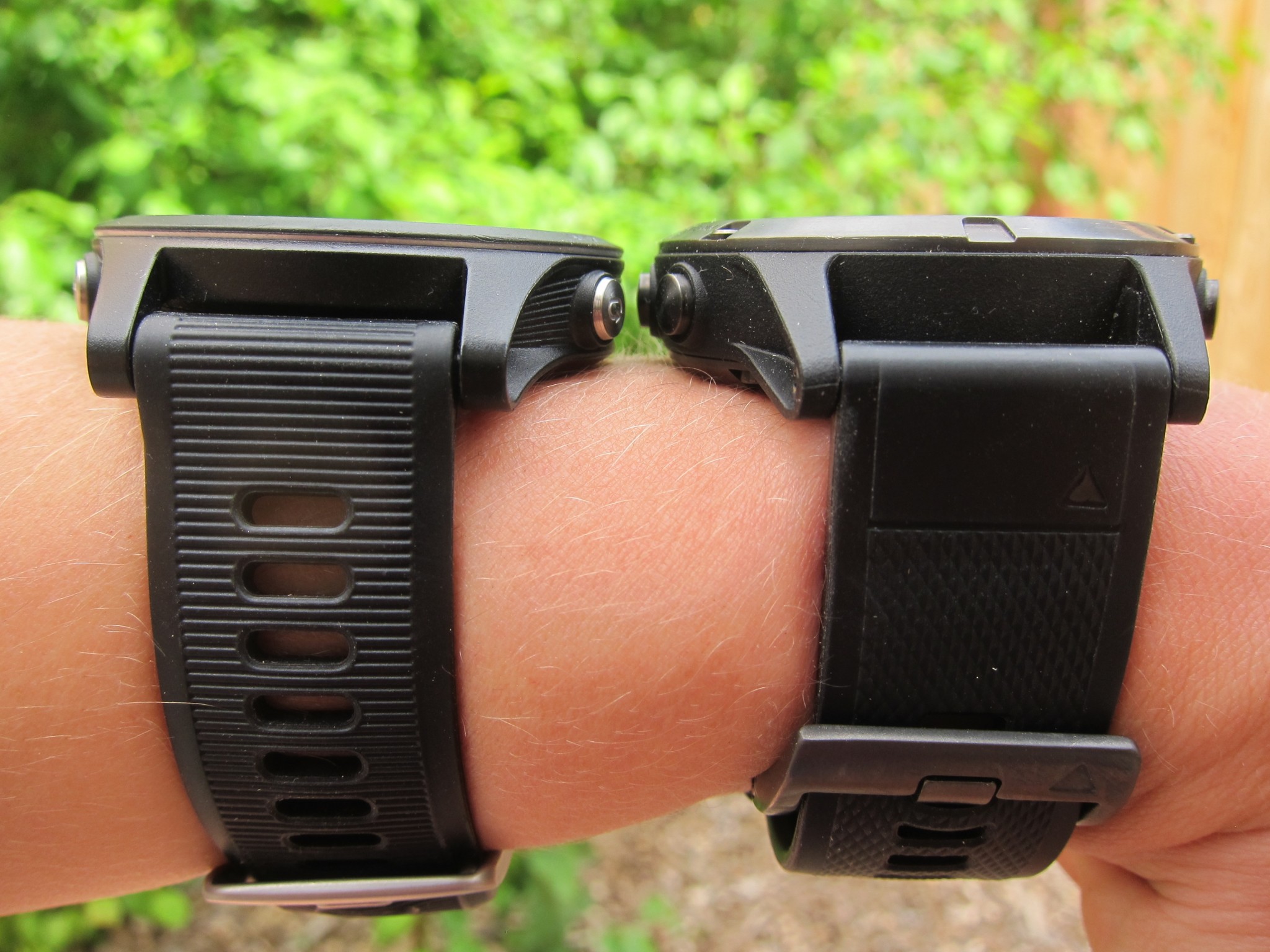 Compared to the rest of the test group, the Fenix 5 is thinner than the Suunto Ambit3 Peak. Additionally, the Fenix 5 can be purchased with the same features, but varying battery life, in both a smaller and larger version than what we tested. We tested the unqualified Fenix 5, while the Fenix 5S is smaller and the Fenix 5X is larger. They all have the same features and vary only in battery life and some navigation attributes.