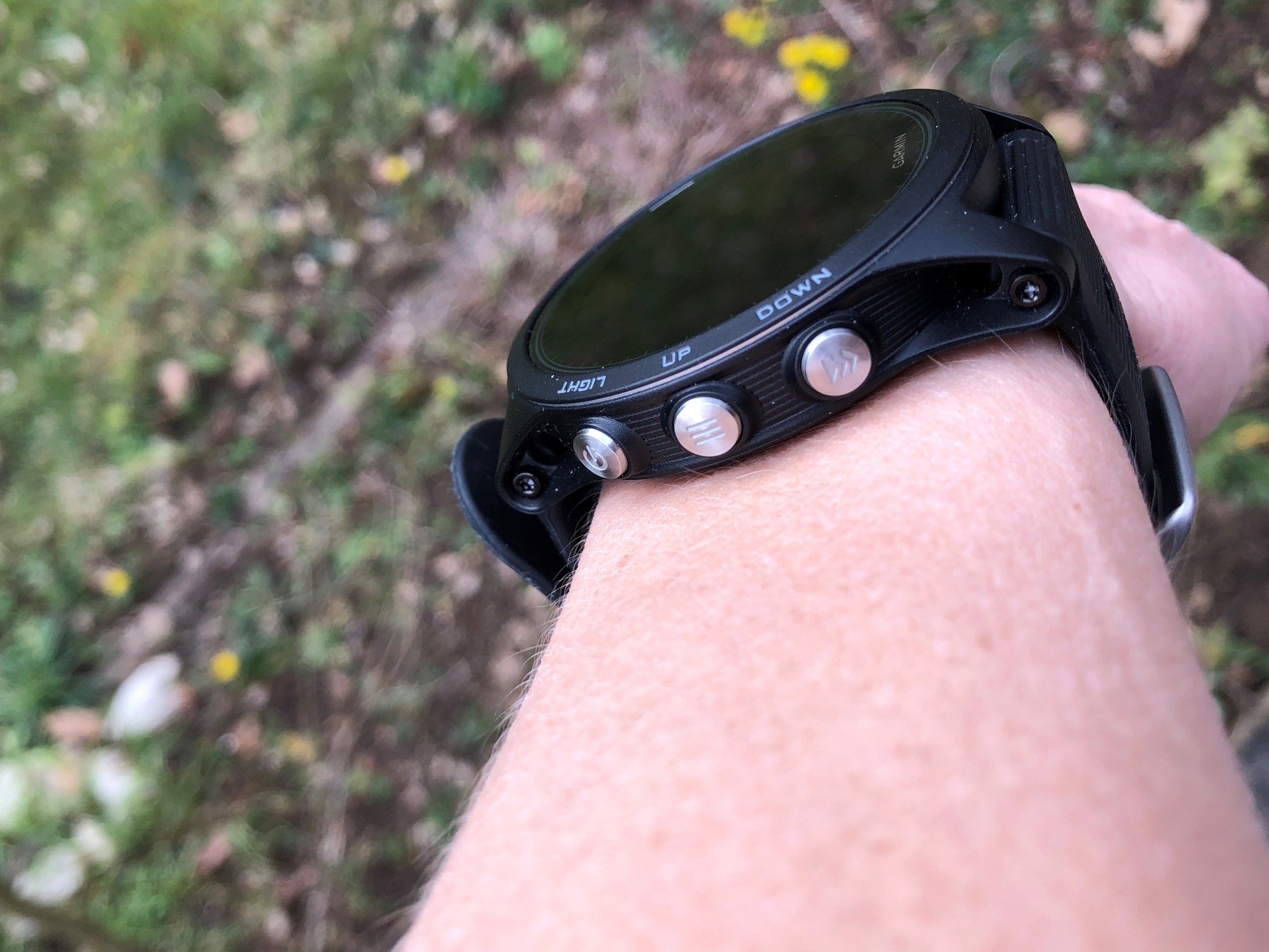 The face design has a bezel made of a fiber-reinforced polymer, which gives it a more finished and high-quality look than the Garmin Forerunner 235. The five buttons are low profile enough that you will not get stabbed doing your push-ups! Wearing the Garmin Fenix 5x Plus Sapphire or the Baro Suunto 9 during push-ups resulted in some bruising on the back of our hands due to their buttons.
