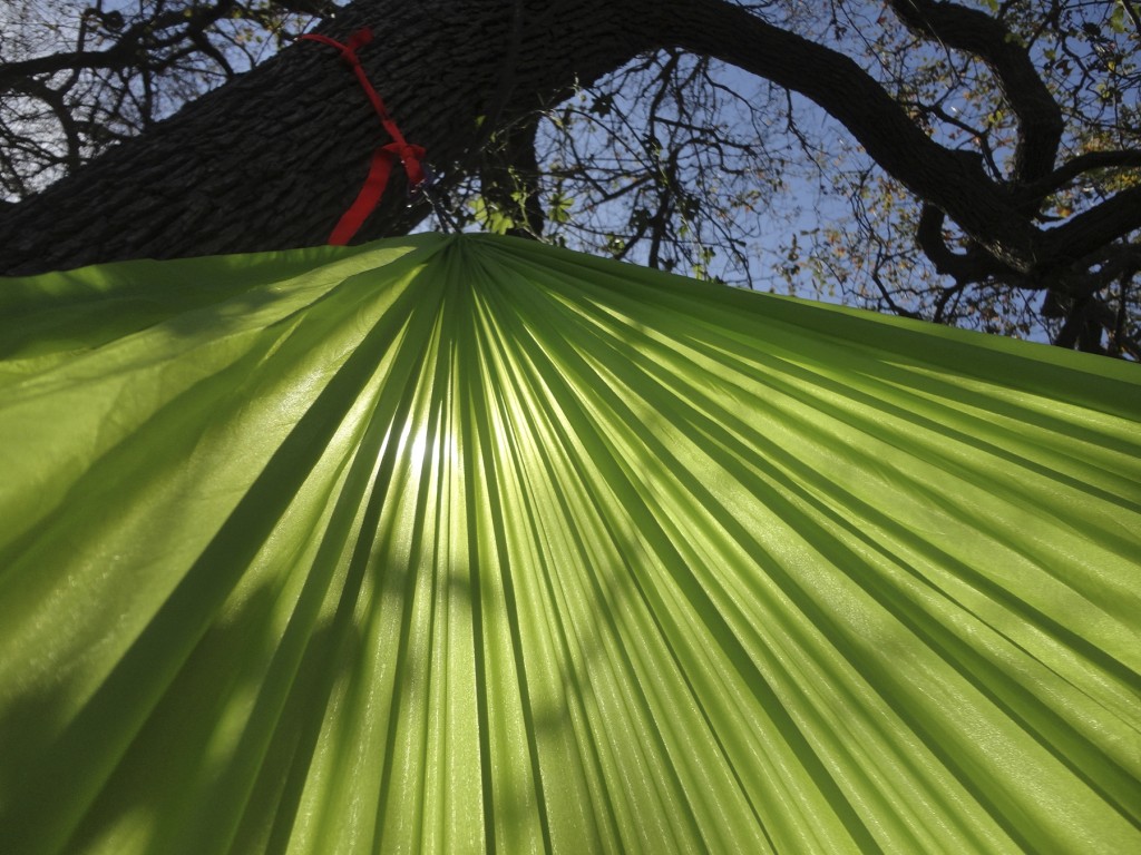 We tried a variety of hanging lengths as well as different setups to try and get comfortable, but when too loose the material falls to the side of the center ridgeline, leaving a firm line up your back and preventing you from lying diagonally. When strung tight the ridgeline is still there, although less prominent, and the material has a tendency to wrap around your body and limit your range of motion and ability to settle into a comfortable spot.