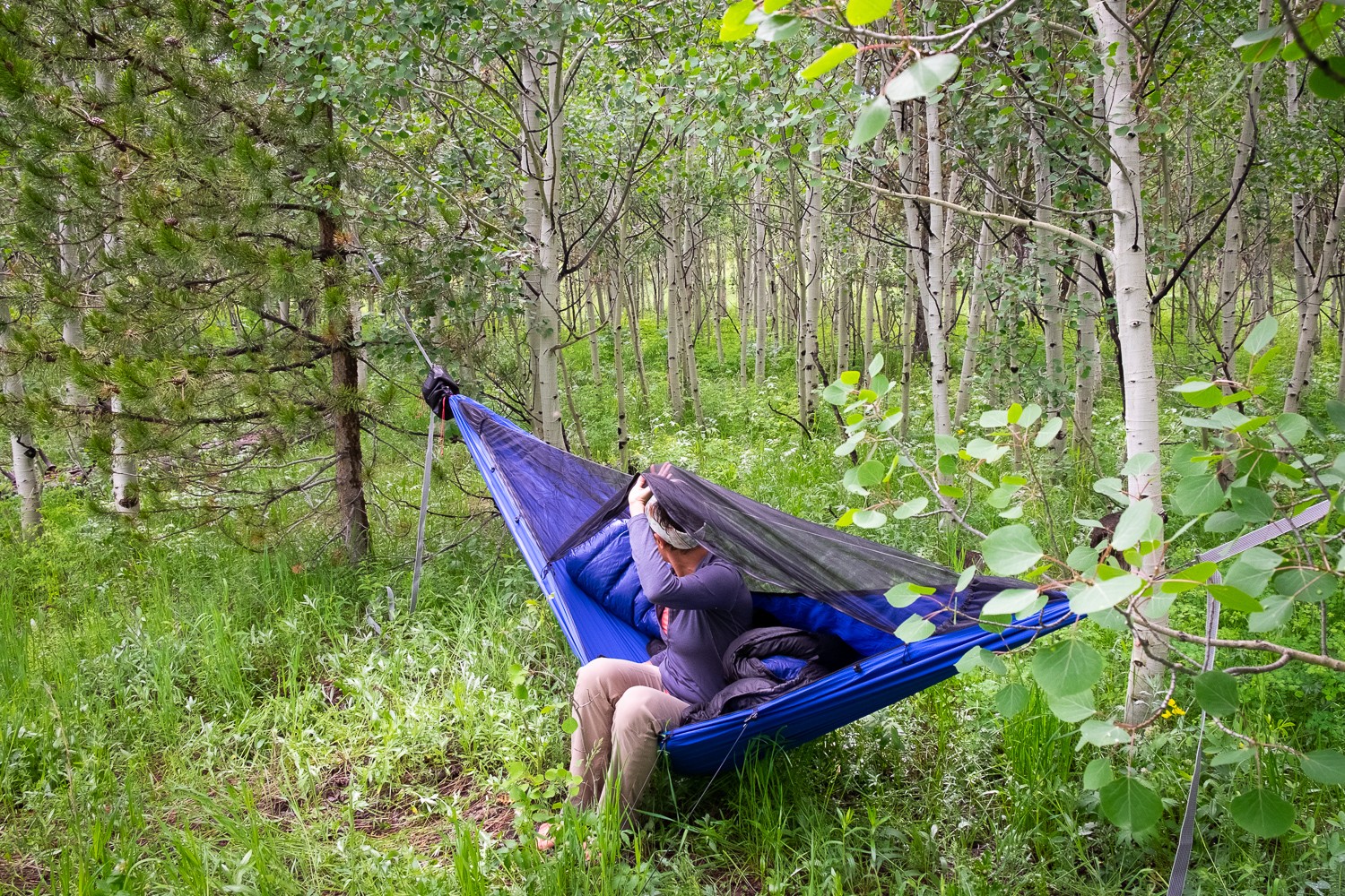 If you don't have an underquilt, a double layer hammock like the Dutchware Chameleon is the next best thing, keeping your insulation where you need it.   Credit: Elizabeth Paashaus