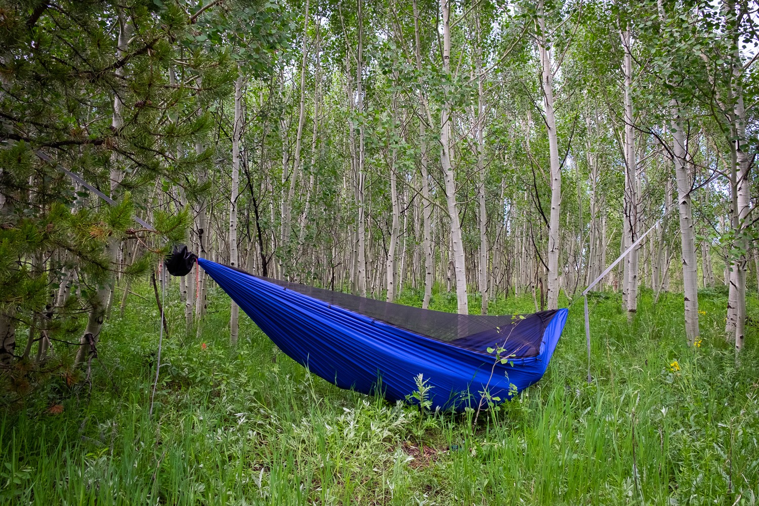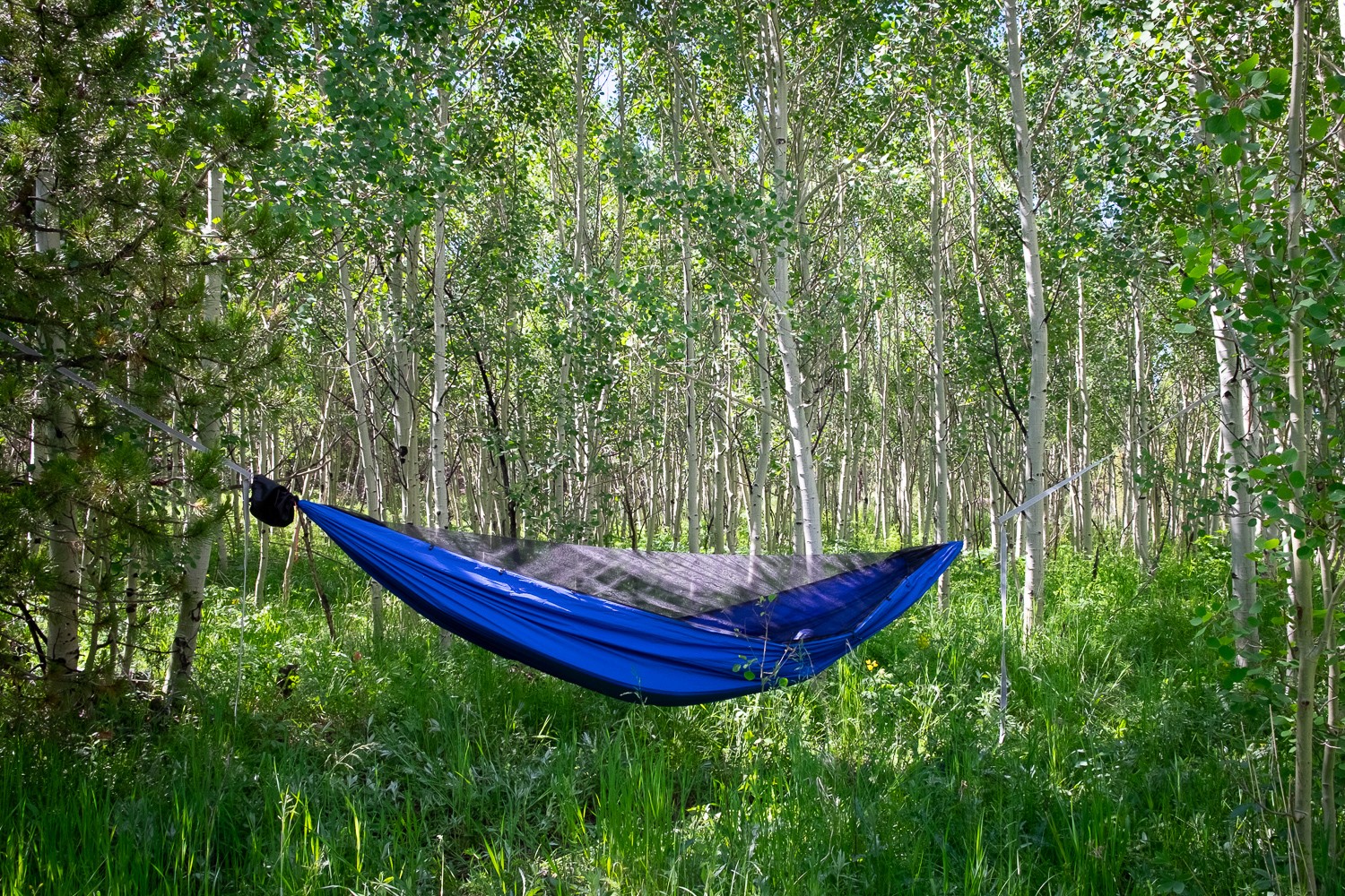The reversible asymmetric bug netting allows you to have the comfort of an asymmetric hammock without the commitment to one head direction.   Credit: Elizabeth Paashaus